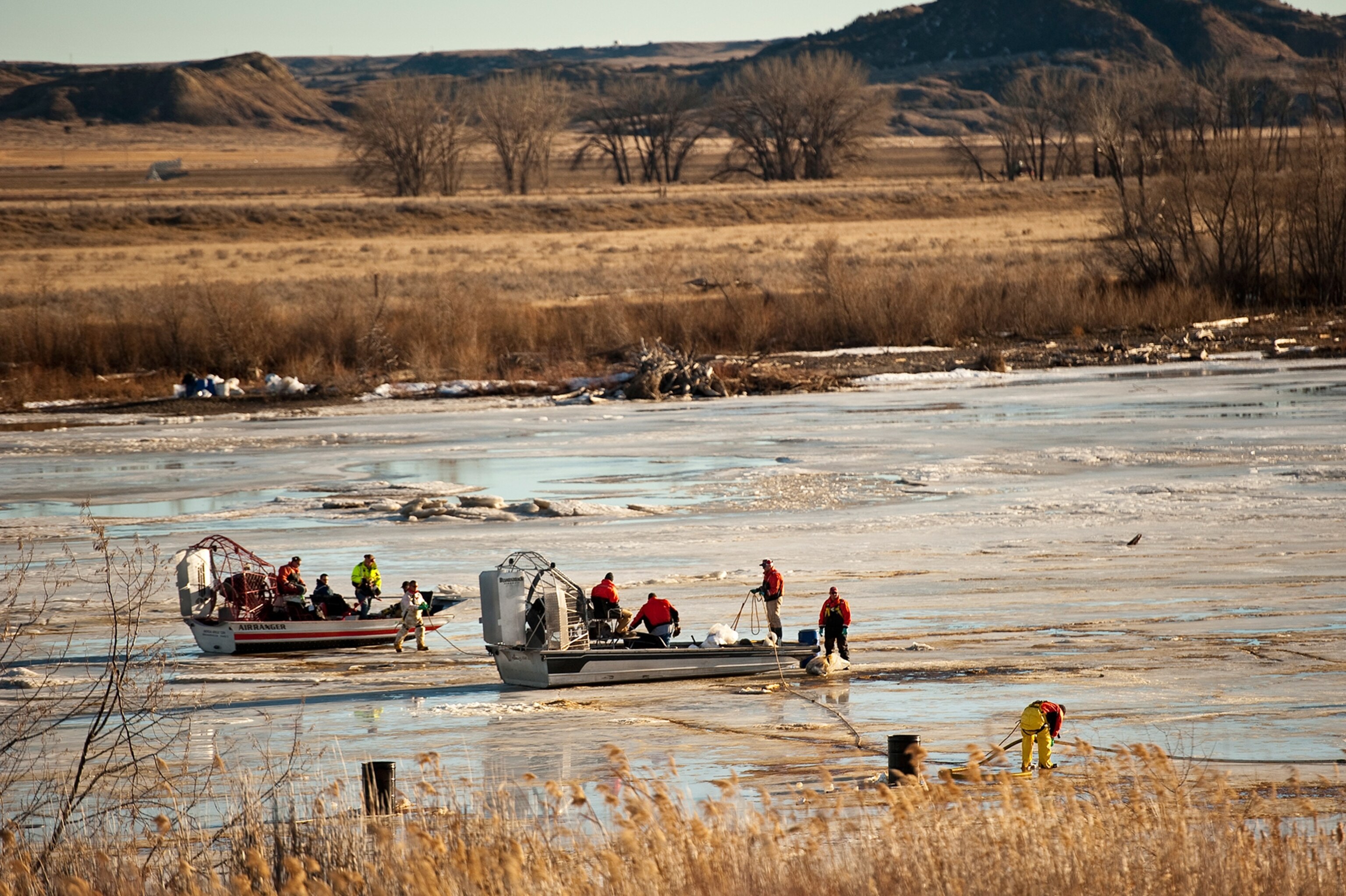 The Poplar pipeline's 31,000-gallon spill on January 17, about nine miles south of here, is a rare test of the capacity to respond to oil accidents in frozen water. Its cleanup progresses as the U.S. Senate voted Thursday to approve the pending Keystone XL project, which would cross the same river about 20 miles upstream, carrying almost 20 times as much crude. (See related story: "Oil Spills Into Yellowstone River, Possibly Polluting Drinking Water.")