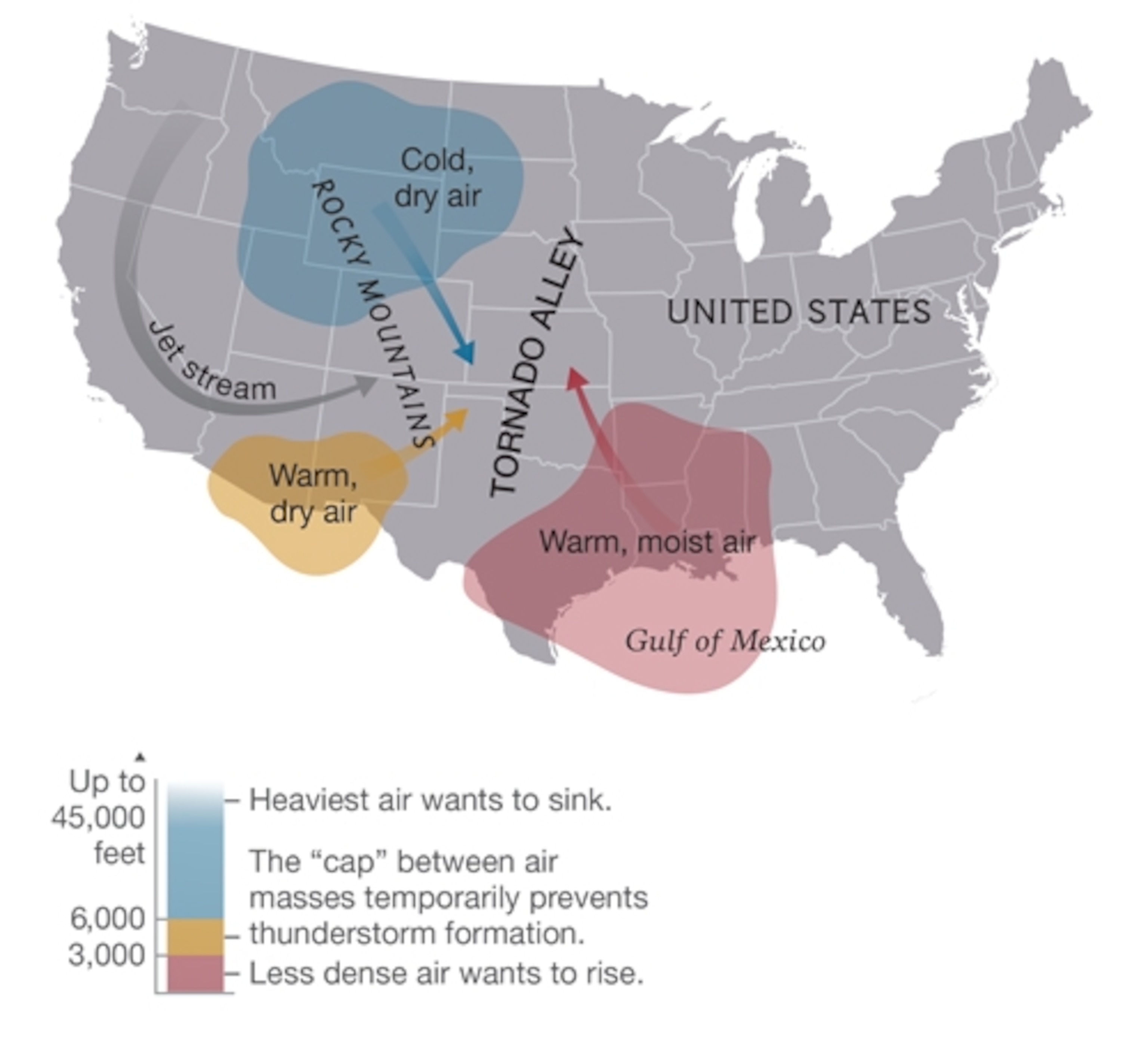 Warm air rolling off plateaus in Mexico colliding with cold air from Canada had set the stage by destabilizing the atmosphere. And severe thunderstorms earlier in the season had left behind dangerous amounts of moisture.