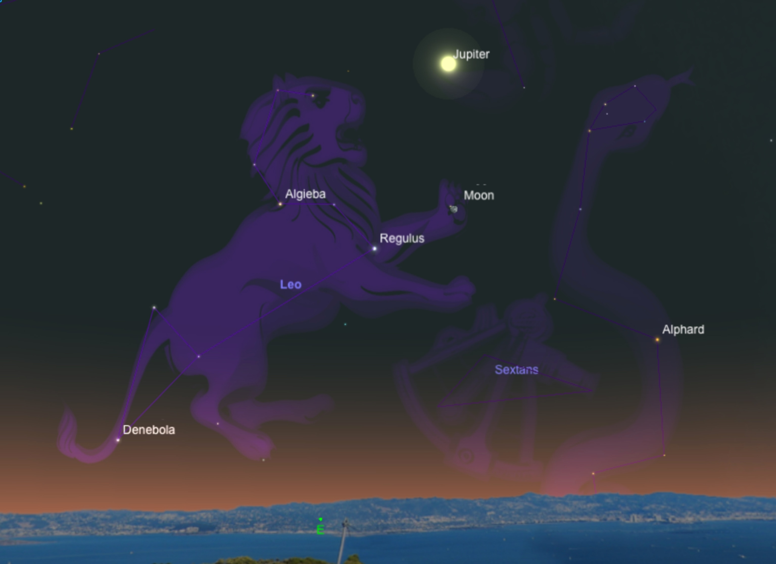 Earth's natural satellite will appear in close conjunction—separated by only four degrees—with the bright star Regulus, located 79 light-years away.