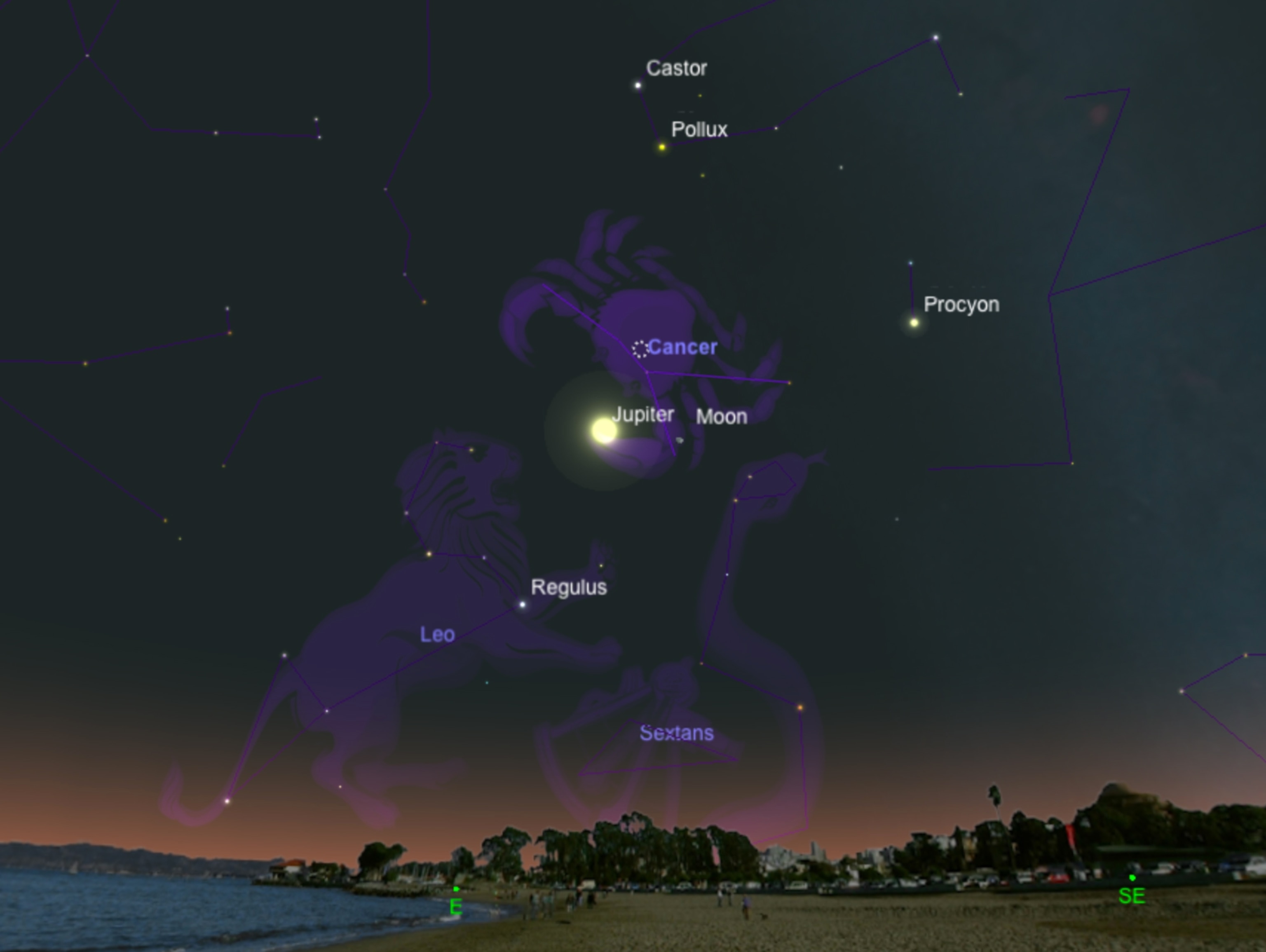 Moon and Jupiter. As night falls on Monday, March 2, sky-watchers can check out the waxing gibbous moon as it pairs up with the largest planet in the solar system, Jupiter.