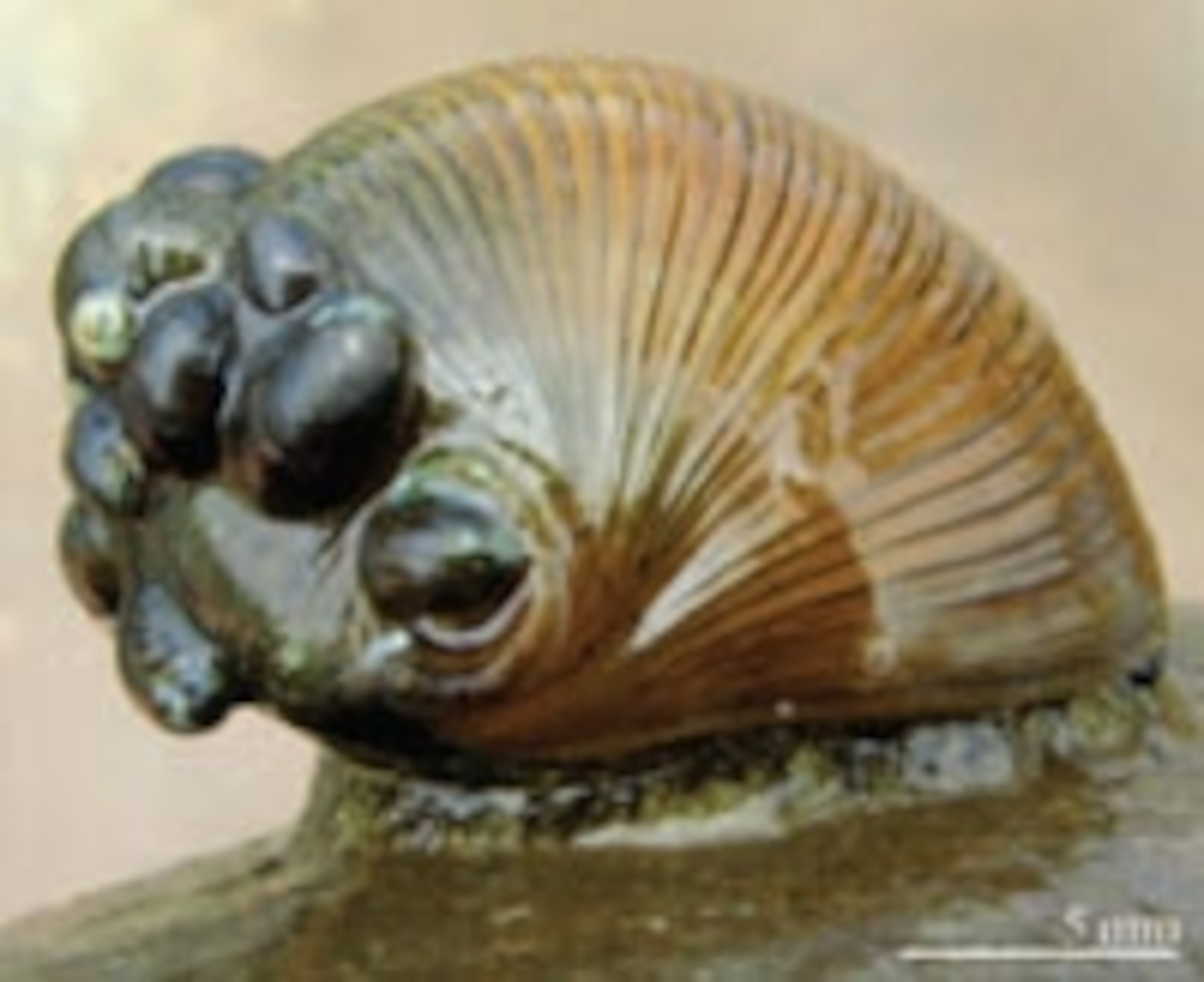 Yasunori Kano from the University of Miyazaki has found that the babies of Neritina asperulata, a tiny snail just 3 millimetres across, hitchhike on the back of a larger species Neritina pulligera. This living bus is about 2 centimetres long, and dwarfs its passengers by more than seven times.
