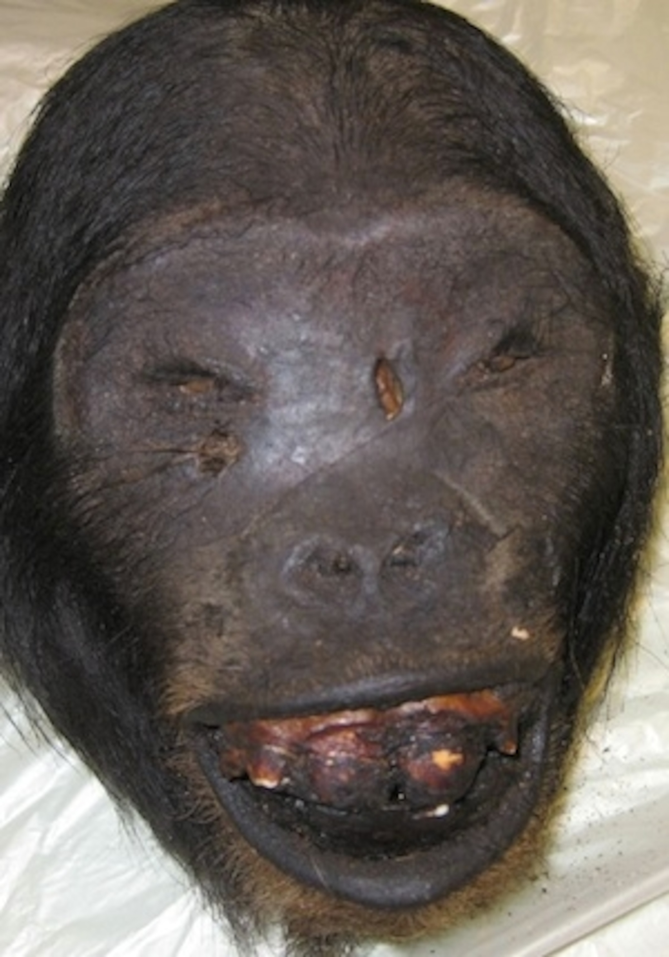 The authors of the new study studied wildlife products seized by customs agents at JFK airport between 2008 and 2010, and later also looked at additional seizures in Philadelphia, Washington, Houston, and Atlanta. (The gruesome picture above, from the paper, is a primate head seized at JFK.) All told, they looked at 44 animals. Nine were primates, and the rest of were rats. The scientists isolated DNA from the meat to identify which species it came from. Their sources including chimpanzees and several species of monkeys.