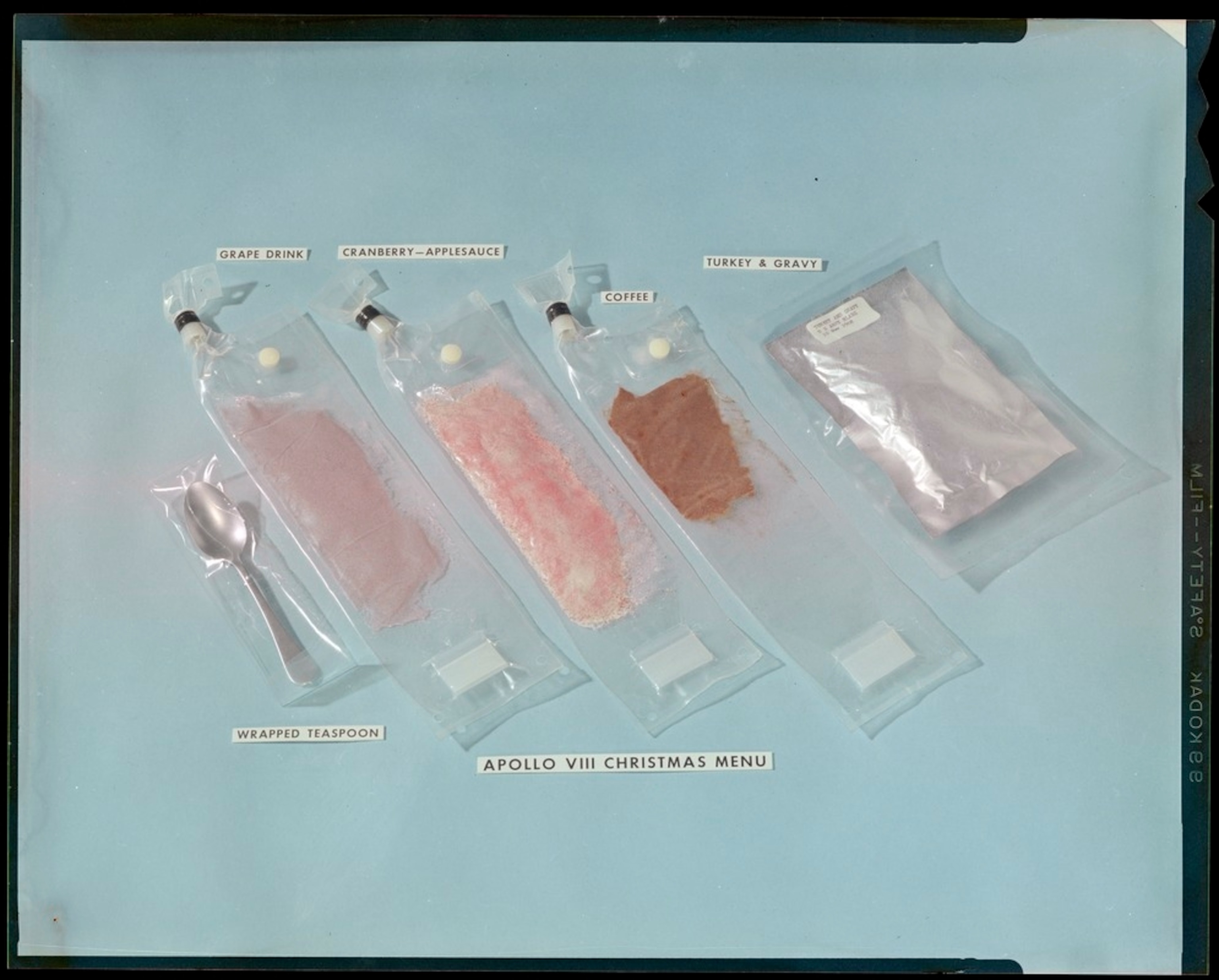 On Christmas Day in 1968, the Apollo 8 astronauts, on their way back to Earth after circling the moon, gently knocked their in-flight menu during a live broadcast for all the world to hear. “The food is varied, generally pretty good. If that doesn’t sound like a rousing endorsement, it isn’t,” Mission Commander Frank Borman said. They’d been eating mostly lukewarm compressed cubes of meat, bread, and fruit that, after being rehydrated, tended to taste more like the wrapping than the food. But when the crew opened their holiday dinners, they found a delightful surprise spread of real turkey, brown gravy, and cranberry applesauce—a meal that suggested a tastier future was possible.