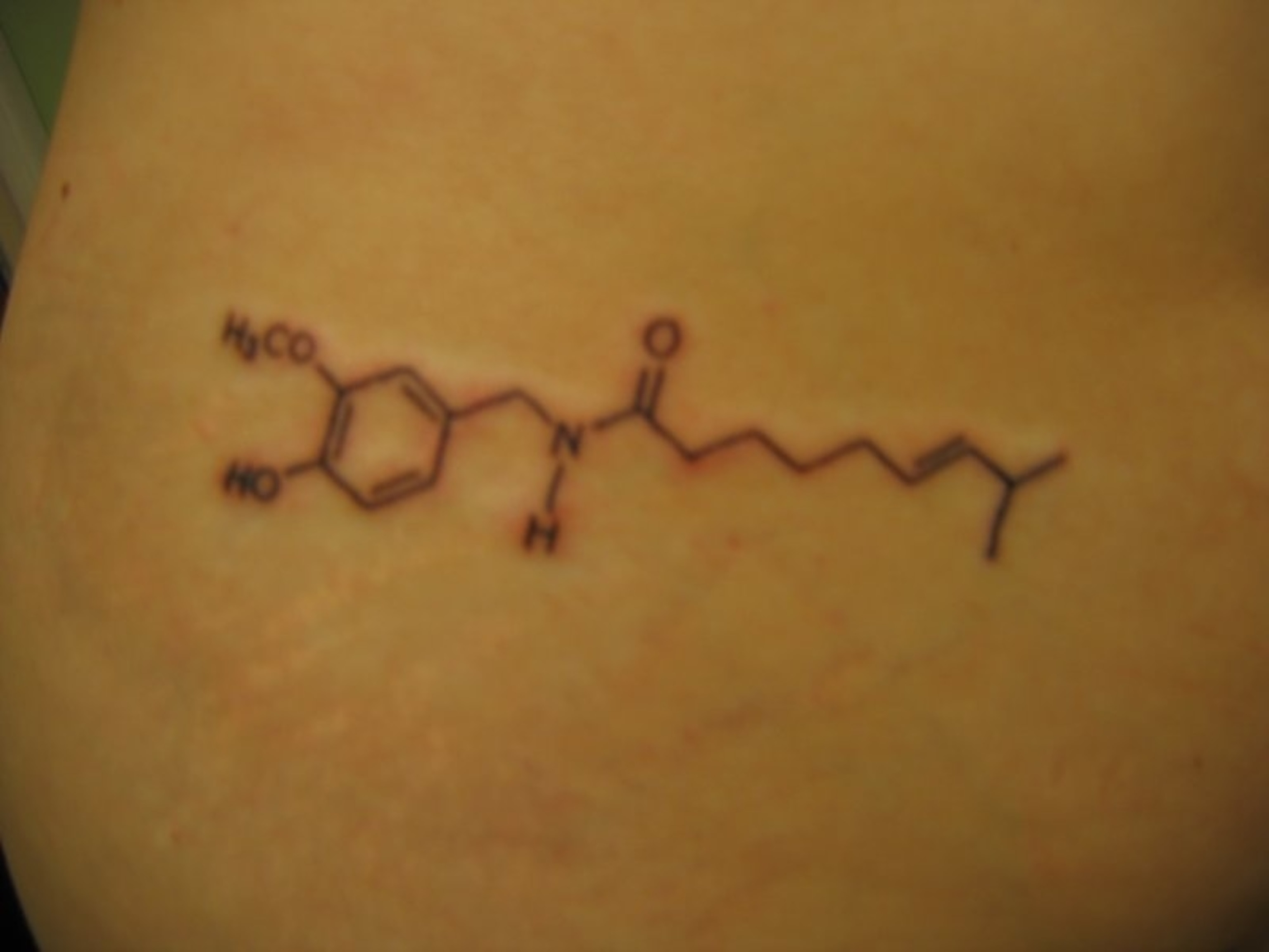“My capsaicin tattoo on my hip. I’m a food scientist.”