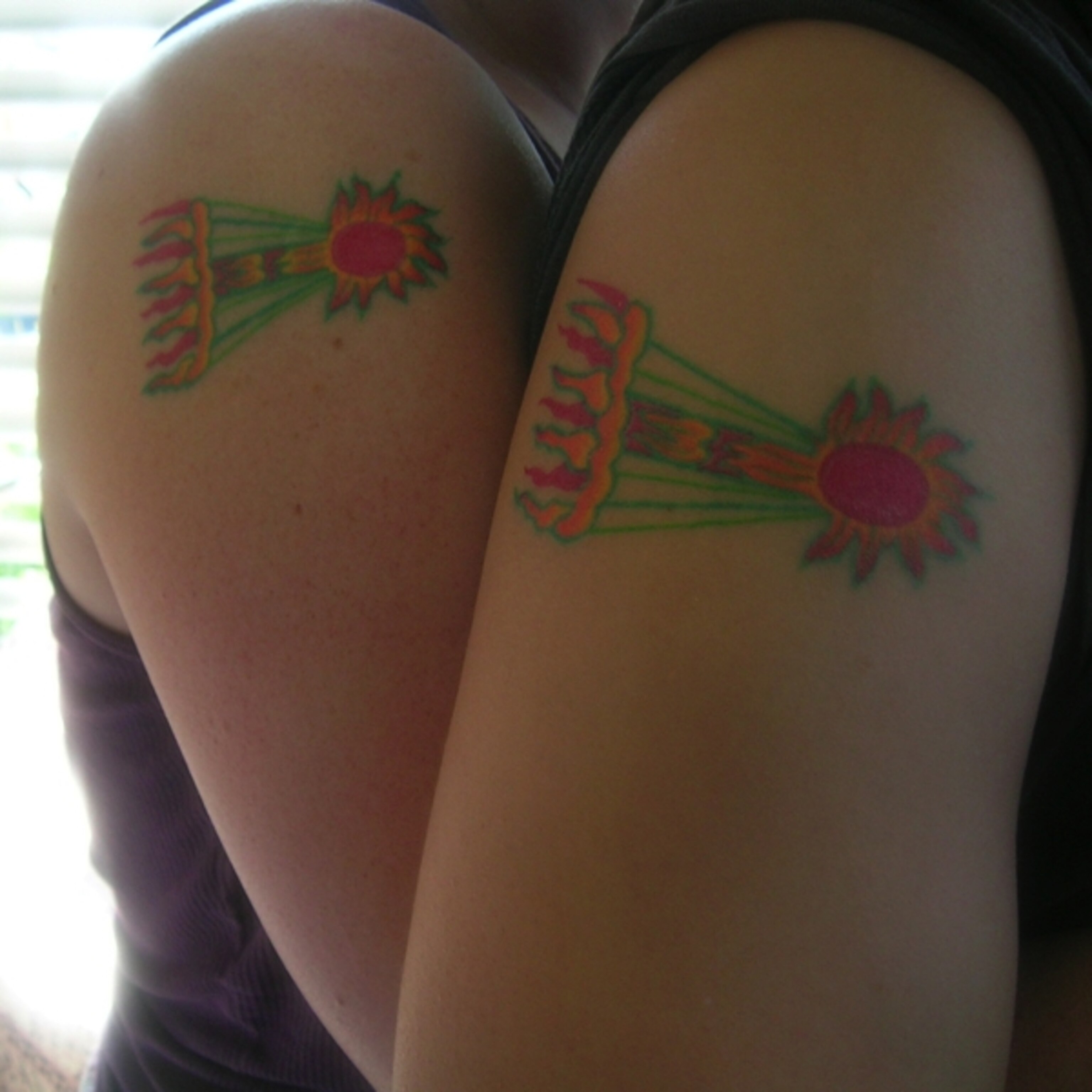 Philosopher Kate Devitt writes, “I started my undergraduate degree in the history and philosophy of science. For our second wedding anniversary, my beloved proposed getting matching shooting star tattoos to immortalize our first date under the night sky. The Halley’s comet design from the Bayeux tapestry was a perfect way to celebrate.”