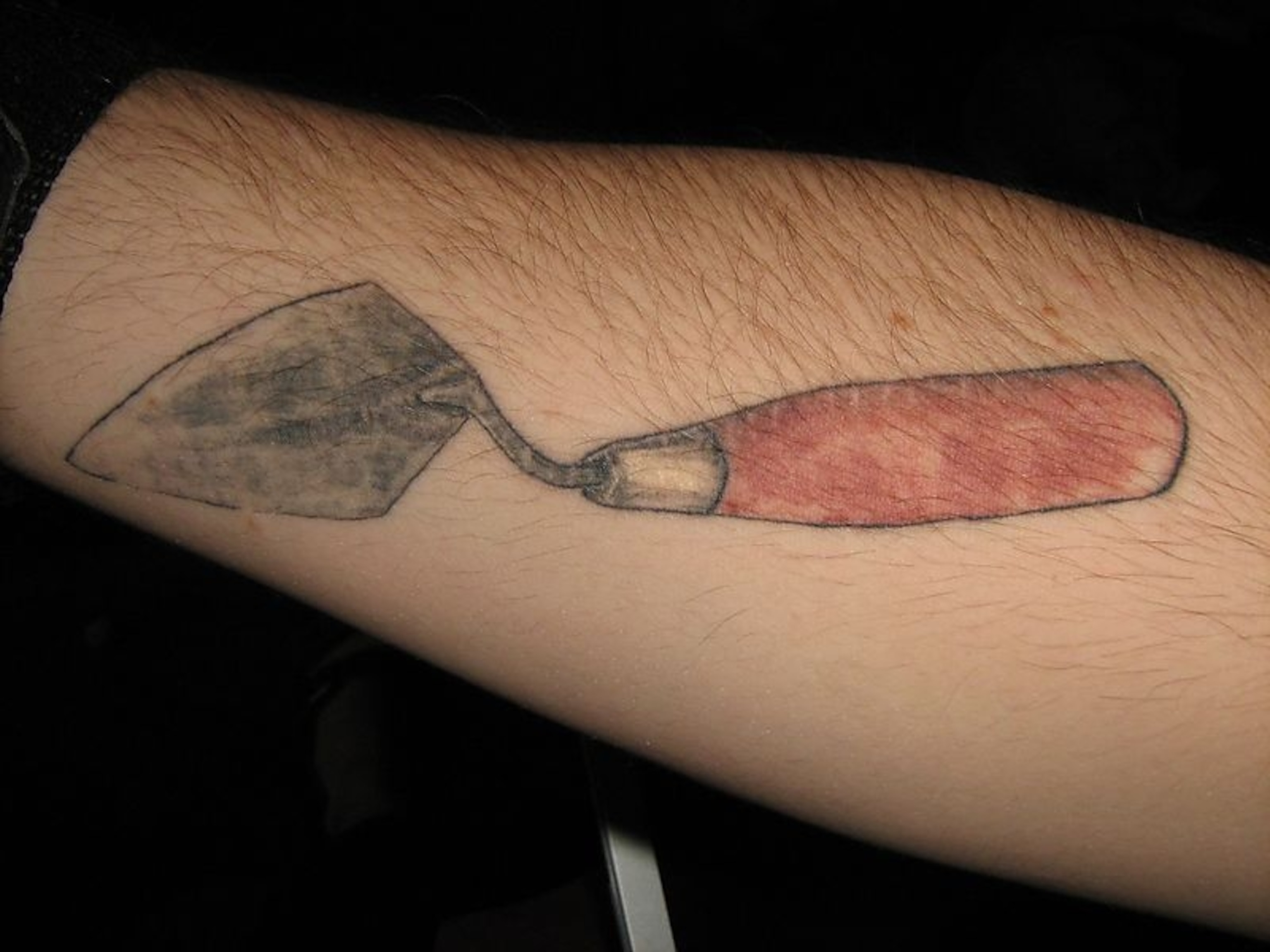 Brandon writes, “Got this at a biker rally in Hines, Oregon. I like to get tattoos of the major professions I have had in my life. But with the trowel everyone thinks I’m a mason. I have to tell them I am an archaeologist.”
