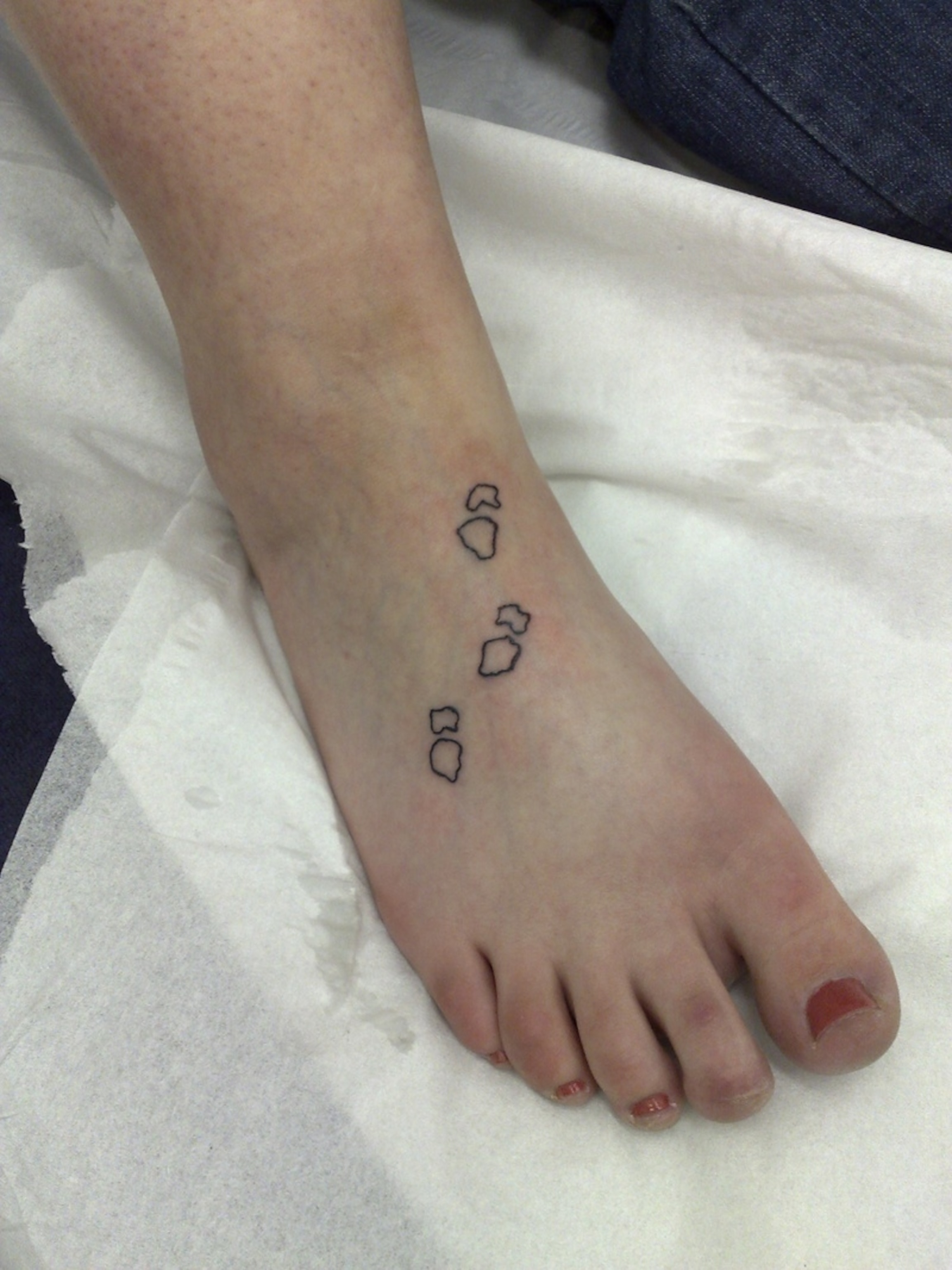 “I got this tattoo done on Saturday. It’s the same set of footprints I use in the avatar for my blog (The Ethical Palaeontologist), but in fact they’re the narrow-gauge sauropod dinosaur trackways from the Ardley quarry in Oxfordshire. There’s no deeper meaning other than the fact that I’ve spent most of my academic career working on sauropod dinosaurs. But there are plans for more, if I could just get hold of a decent black and white illustration of a sauropod dorsal vertebra in dorsal view…”
