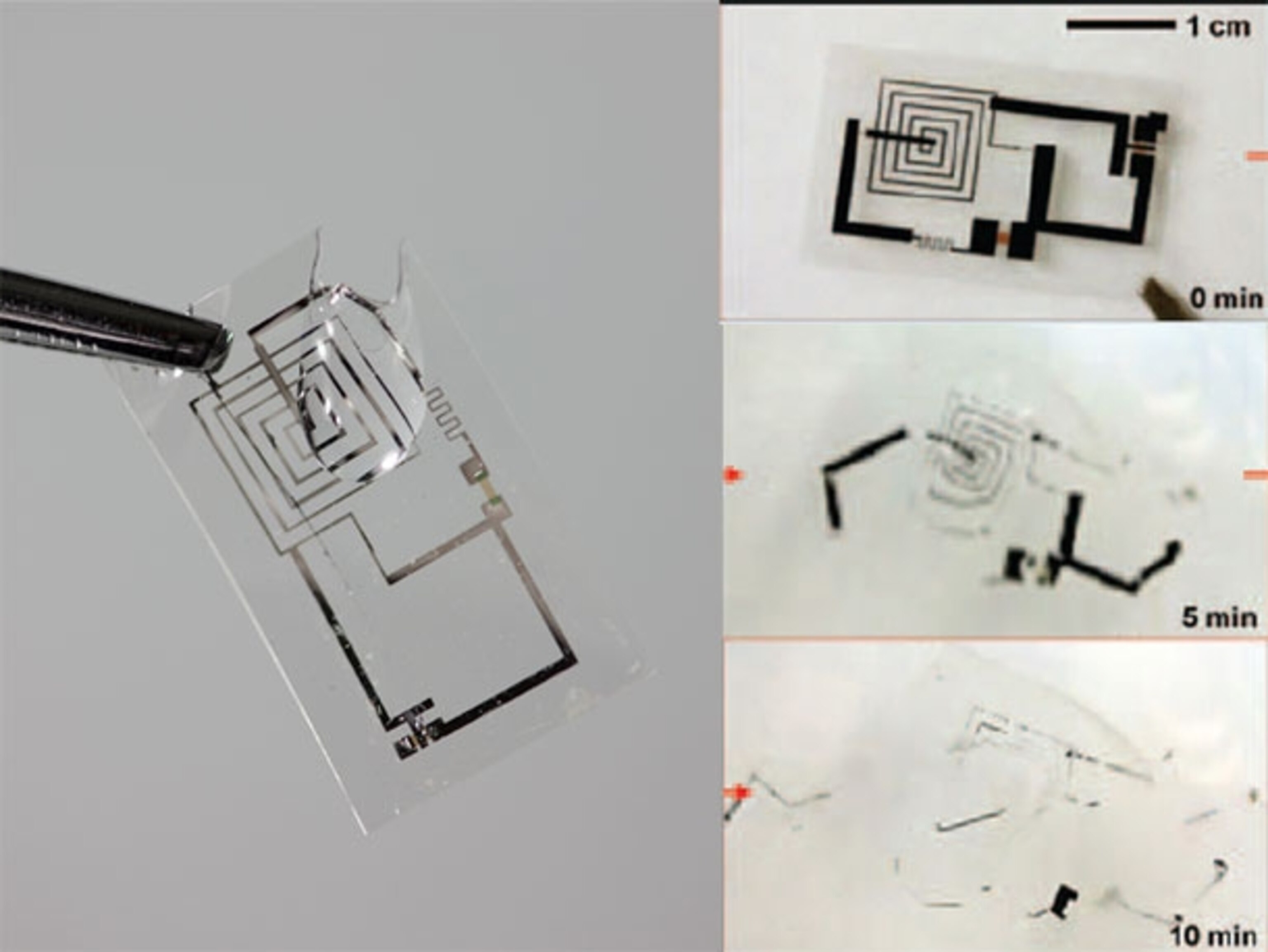 Reference: Hwang, Tao, Kim, Cheng, Song, Rill, Brenckle, Panilaitis, Won, Kim, Song, Yu, Ameen, Li, Su, Yang, Kaplan, Zakin, Slepian, Huang, Omenetto & Rogers. 2012. A Physically Transient Form of Silicon Electronics. Science. http://dx.doi.org/10.1126/science.1226325