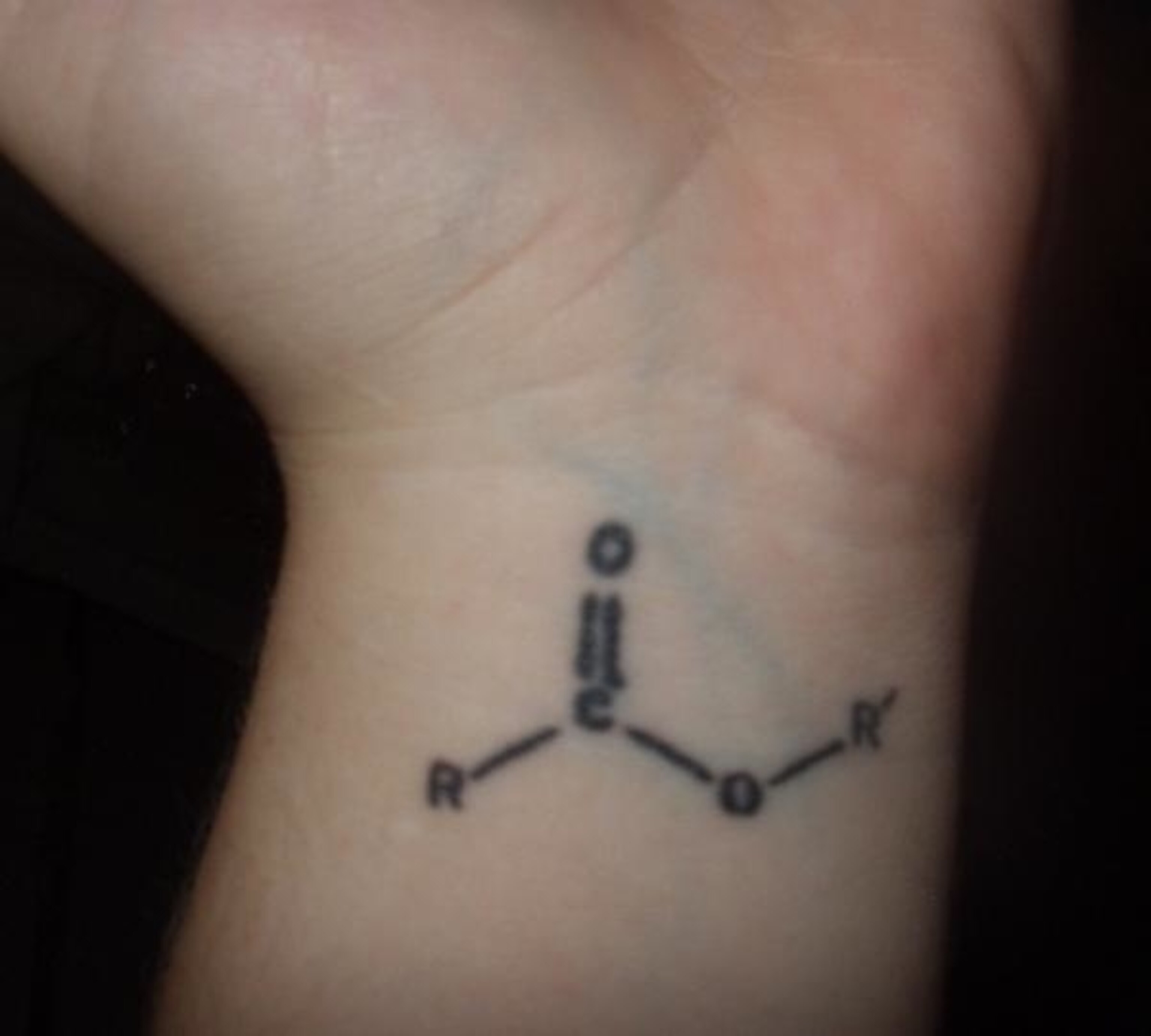 side. i got it as a “got into grad school” present to myself when i graduated college. i am currently getting my PhD in molecular biology (specifically development) but have a chemistry name so i got this tattoo to represent my love of science.”