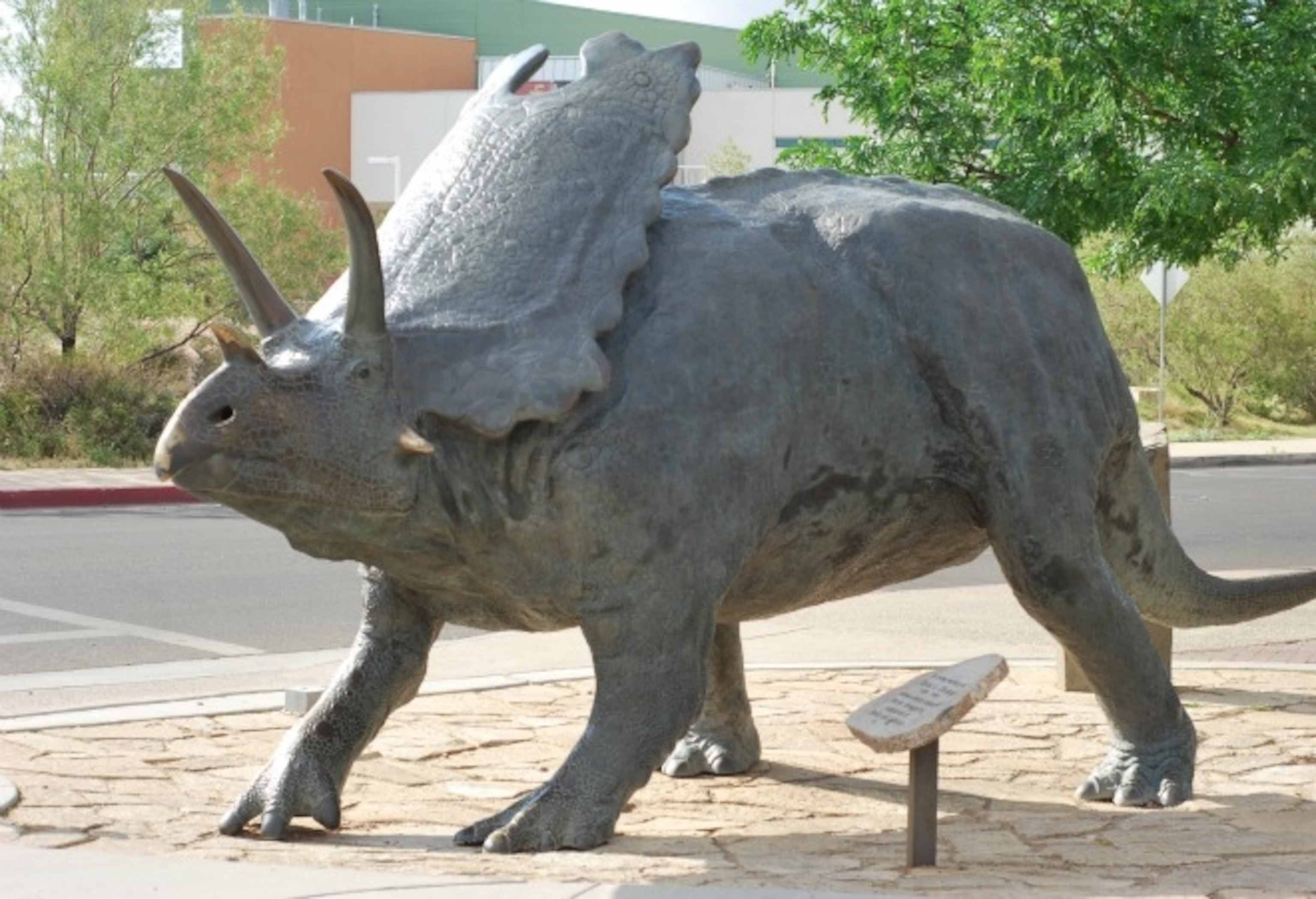 'Spike' the Pentaceratops out front of the NMMNHS. I had wanted to see this dinosaur ever since, as a kid, I saw a documentary showing the sculpture's installation. Photo by the author.