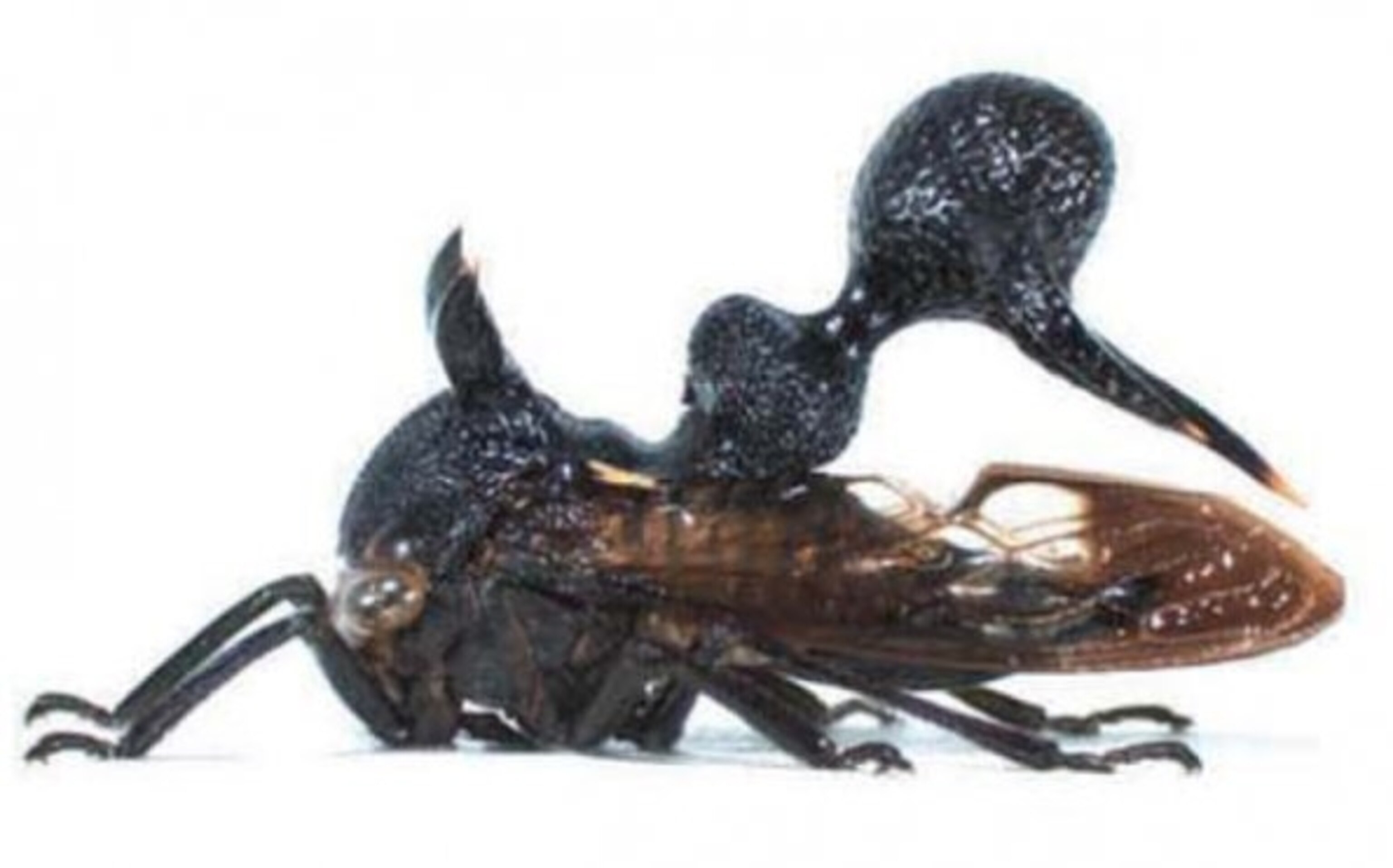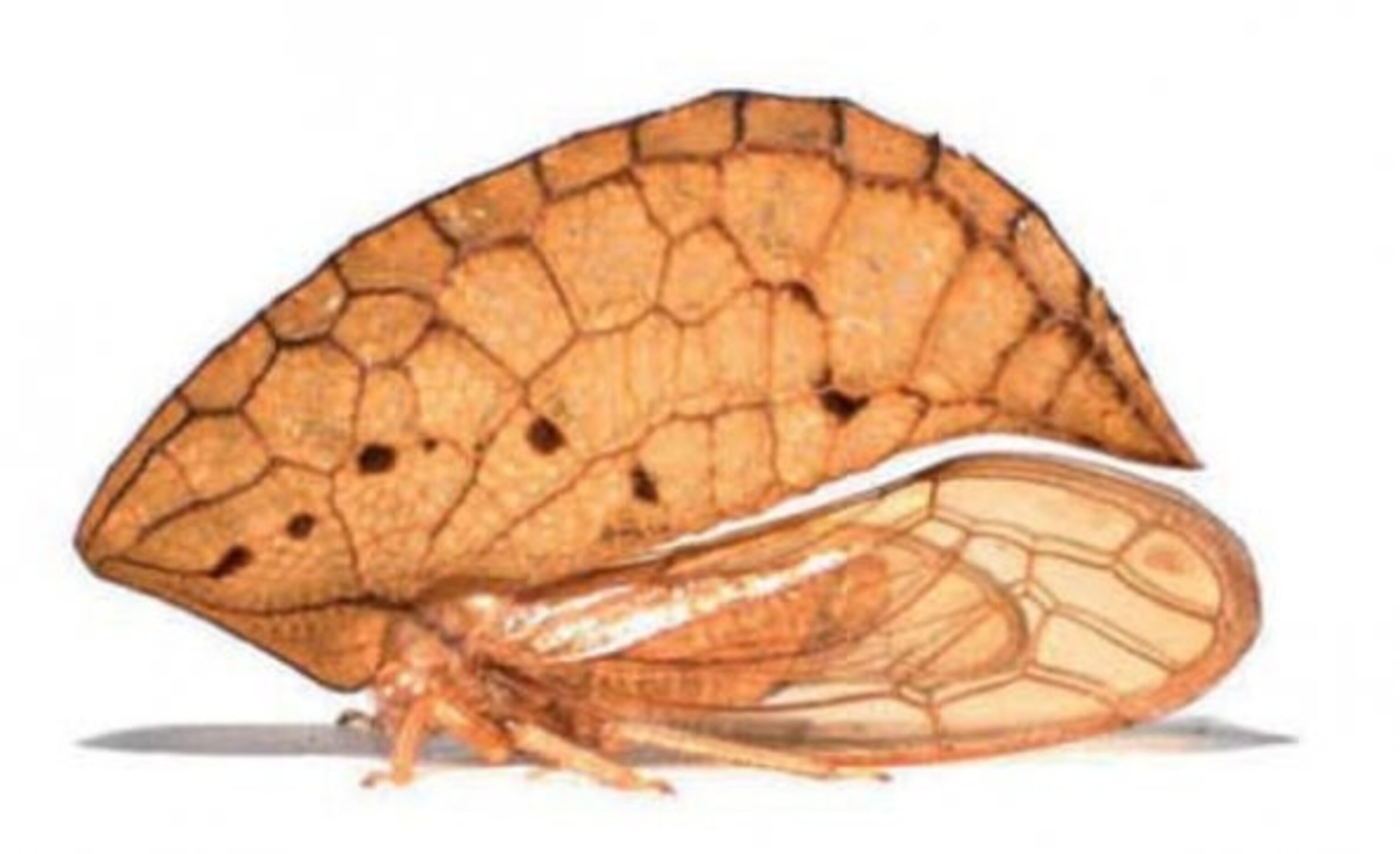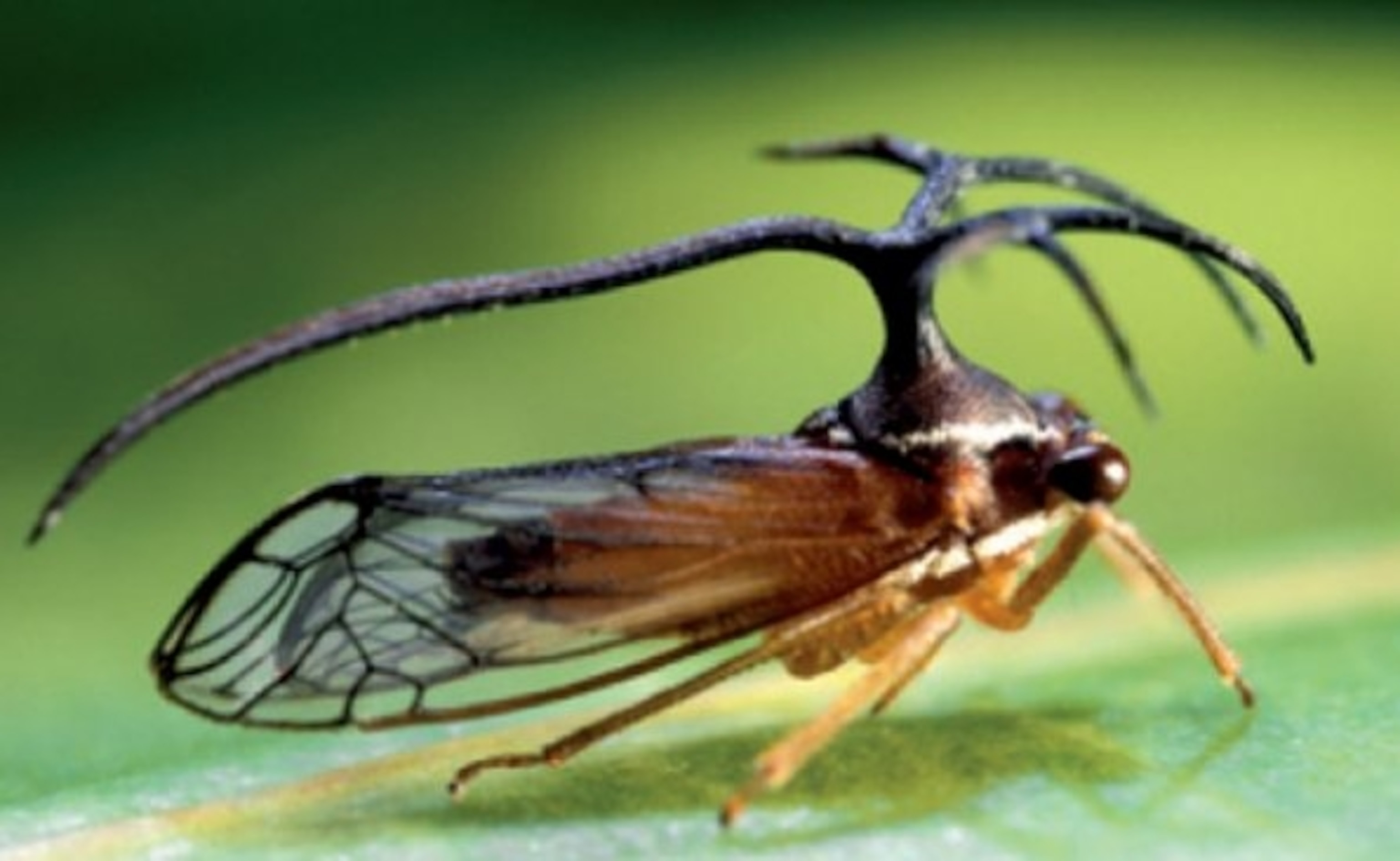 Treehoppers are insects that look like they have materialised from the imagination of a drunk fantasy artist. They would look like simple cicadas, were it not for the elaborate structures on their backs, known as “helmets”. These take the form of thorns, leaves, droppings, ants, and other shapes too bizarre to describe. They are the signature feature of the treehoppers. All 3,200 or so species have them.