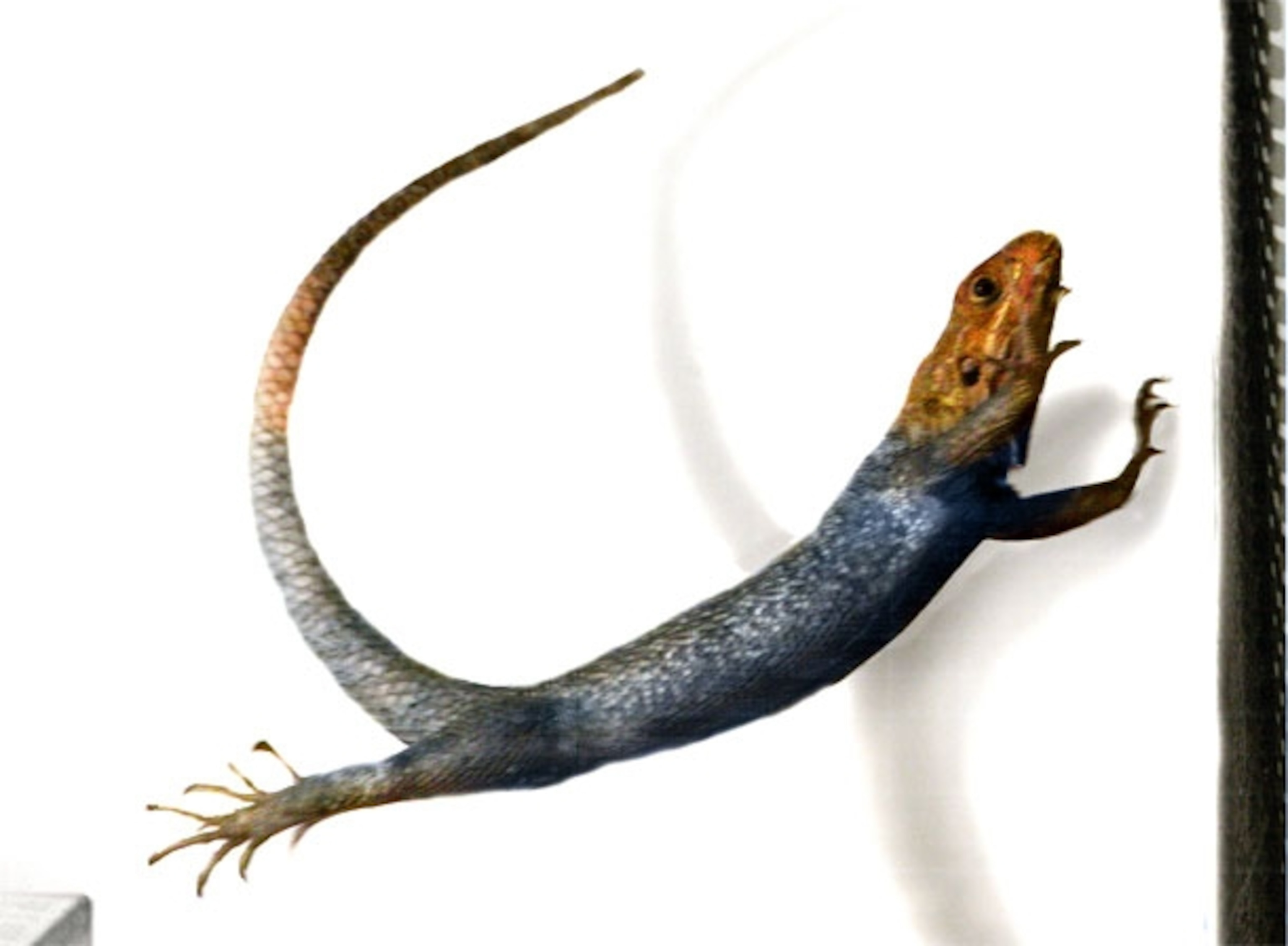 Libby works with Bob Full lab at University of California Berkeley, who has spent years studying the movements of animals, often using delightful robots. This isn’t the first time the group has looked at lizards either. A few years back, they showed that geckos climb walls by exploiting the very forces that bind molecules together. In 2008, they showed that geckos can use their tails as braces to stop themselves from falling, or as rudders to manoeuvre through the air. They even used their discoveries to build a wall-crawling gecko-bot.