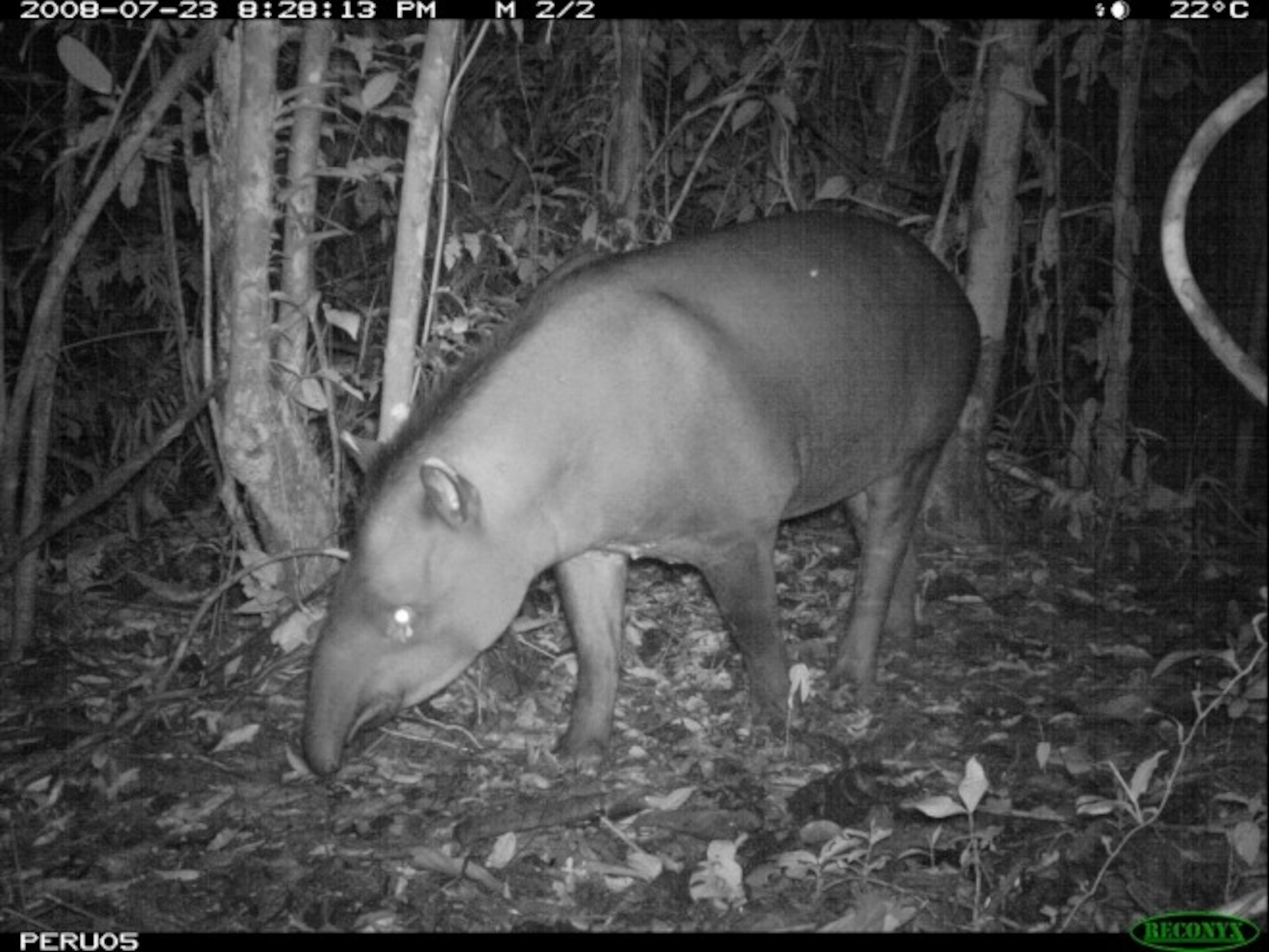 Top Image: A South American tapir – Tapirus terrestris – photographed by a camera trap set up in Peru as part of a research project. Image by Flickr user siwild.