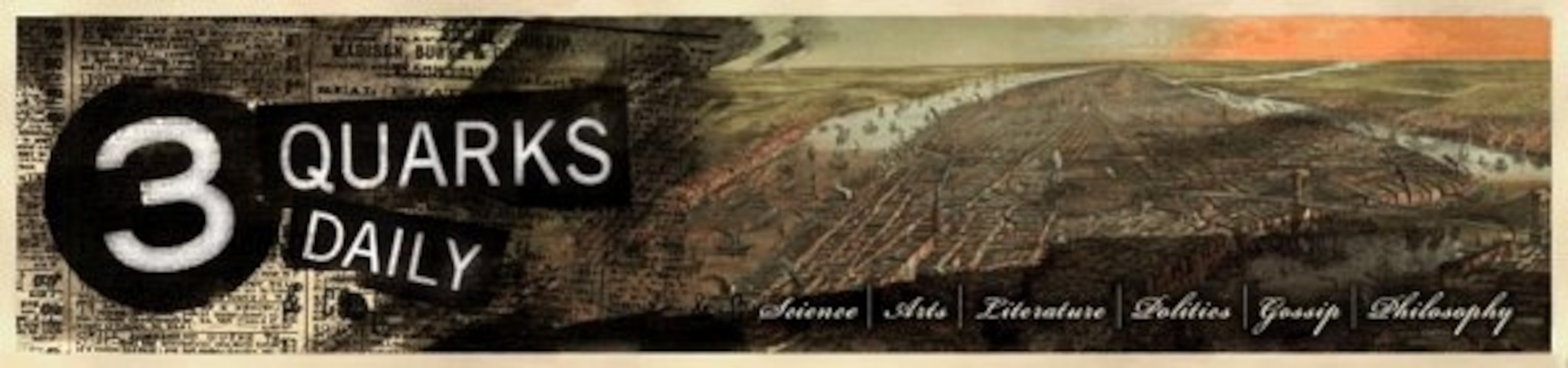 If you don’t already know about 3 Quarks Daily, check it out. It’s an elegant group blog that links to all sorts of interesting stuff on science, art, literature, politics, and philosophy. They also put “gossip” in the list of topics in their banner, but I don’t recall anything on Angelina Jolie or Mel Gibson. This morning, for example, they’ve posted stuff on the evolution of house cats and the leader of the defeated Tamil rebels on Sri Lanka.