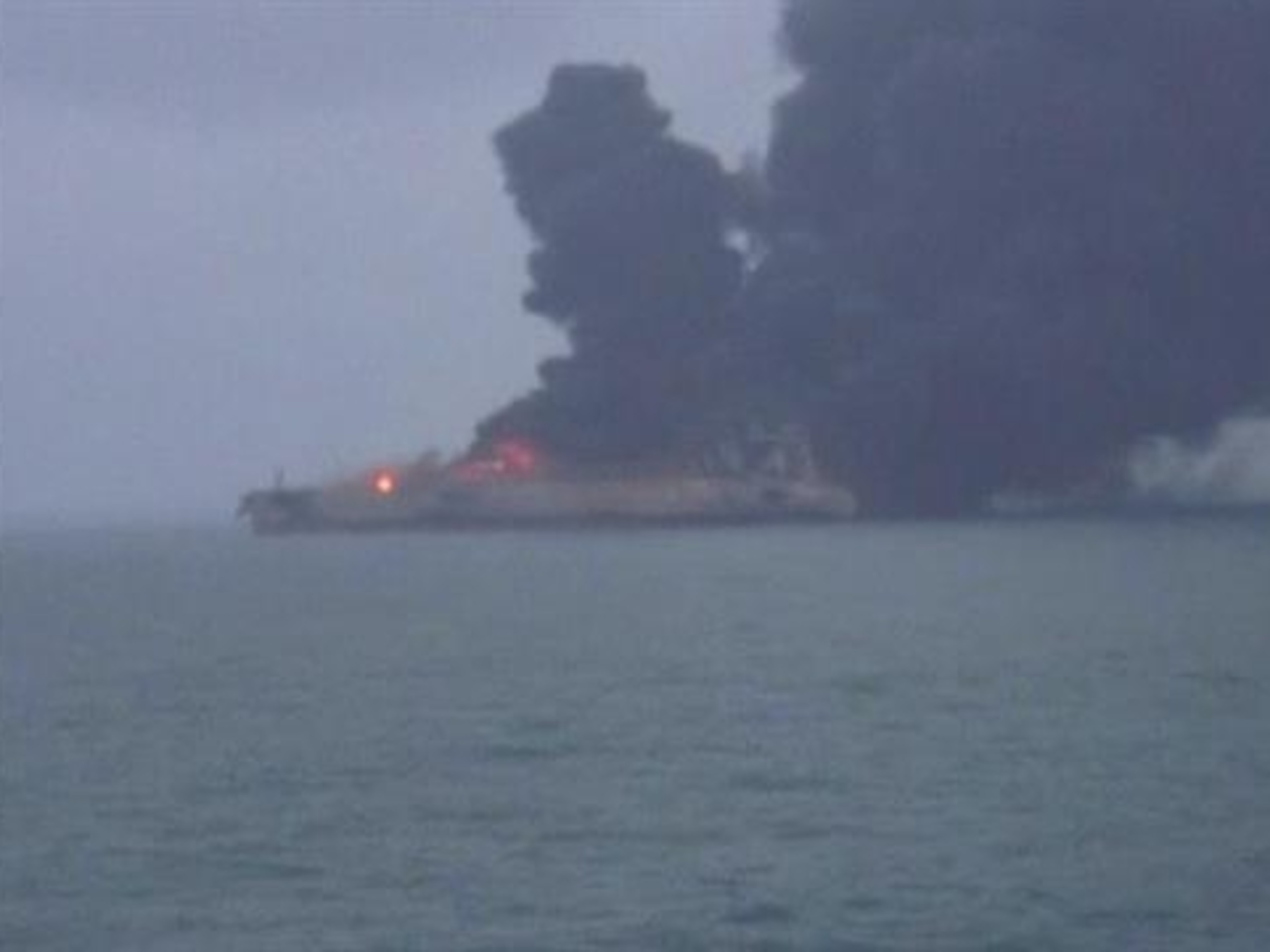 The oil tanker was carrying close to 150,000 tons of condensate, a light oil, when it crashed. It is unclear how much of the oil had burned off or spilled when it sank.