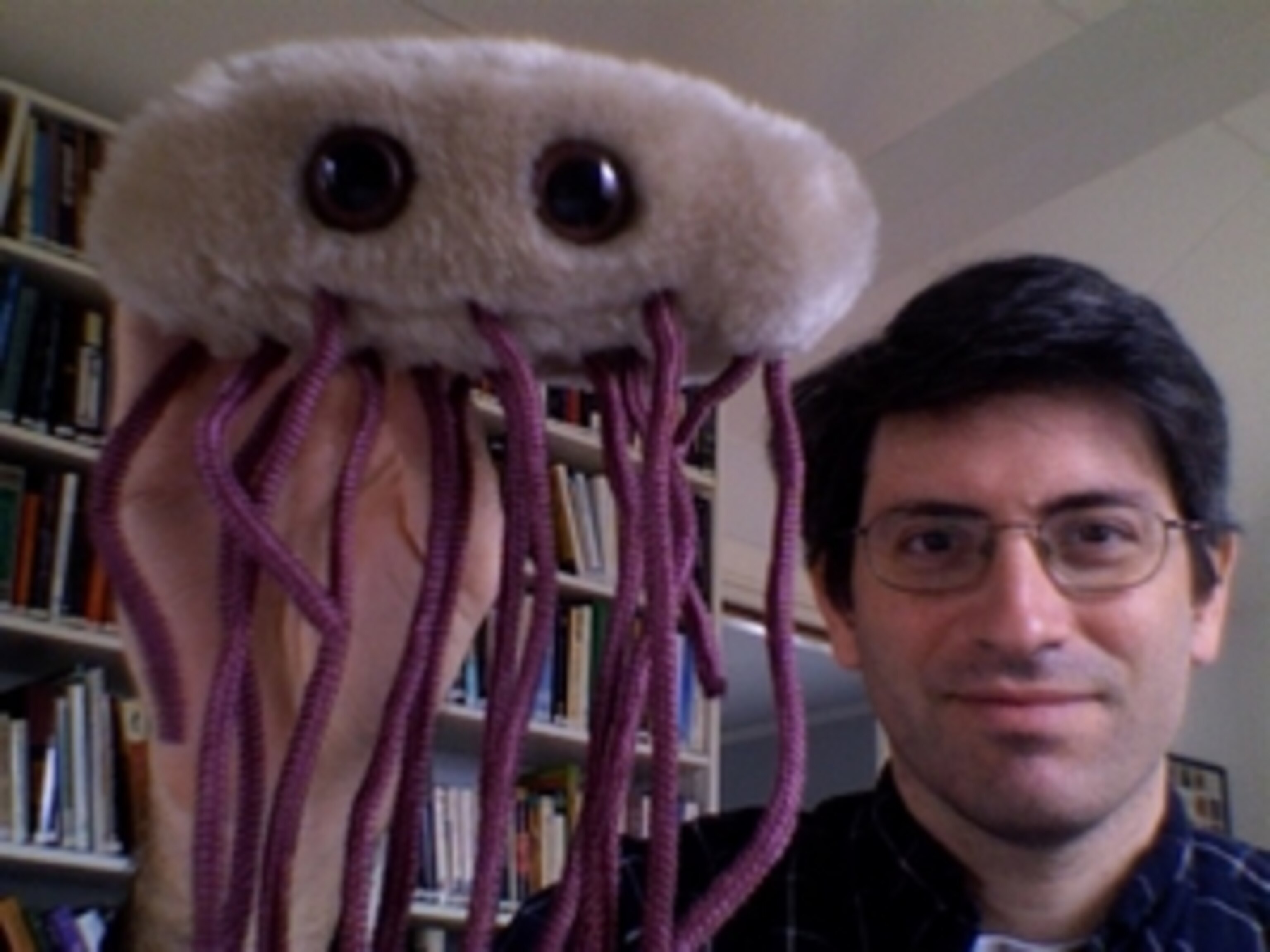 Greg, I always try to find a plush toy related to my latest book. I think it’s part of the late-stage madness that sets in during the third round of manuscript corrections. And E and me will be making the rounds in May to talk about Microcosm. So far, it looks like we’re heading to New York, Boston, Chicago, Los Angeles, San Francisco, and Seattle. In the next couple weeks I’ll have an official book tour schedule to post.