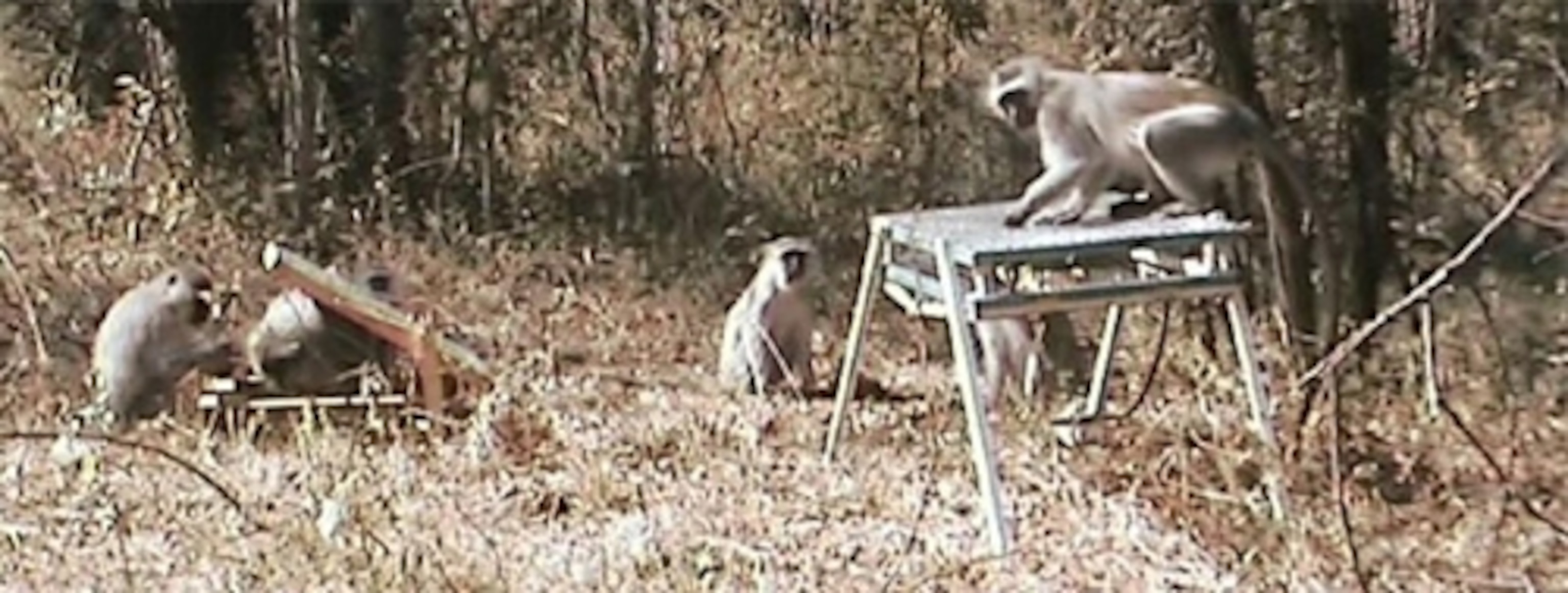 After seven months of initial observations, Fruteau’s team created an artificial market for two groups of vervets with the aid of mechanical food containers. Each housed five pieces of apple that were unreachable, but could be seen through a plastic mesh. The team trained one low-ranking female in each group to open the containers by touching the lid (when they did, one of the researchers triggered it with a remote control).