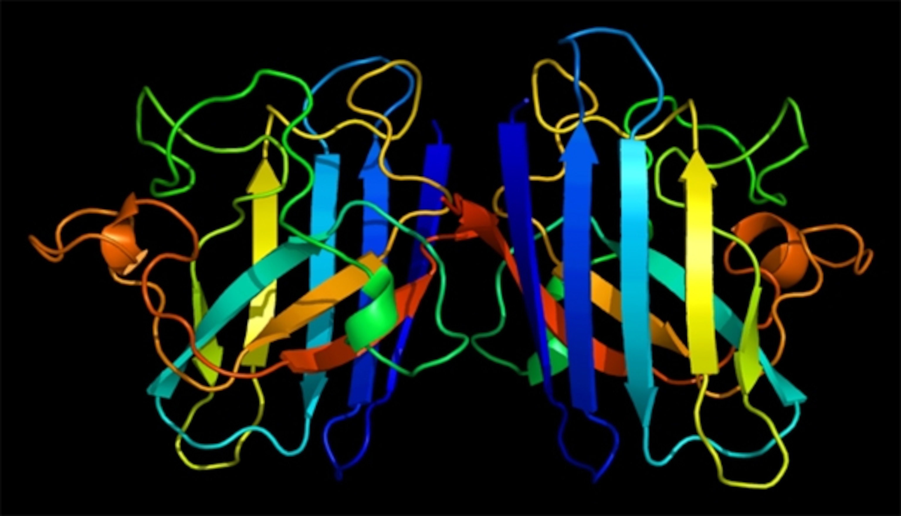 All proteins are long chains of amino acids that fold up in acts of molecular origami. This has to happen with great precision – if the protein ends up with the wrong shape, it won’t work properly. Some people have mutant versions of SOD1 that sometimes fold incorrectly. These deformed proteins have a habit of clumping together and – in mice at least – the symptoms of ALS get worse as the clumps get bigger. These misshapen versions of SOD1 probably cause around one or two in every hundred ALS cases.