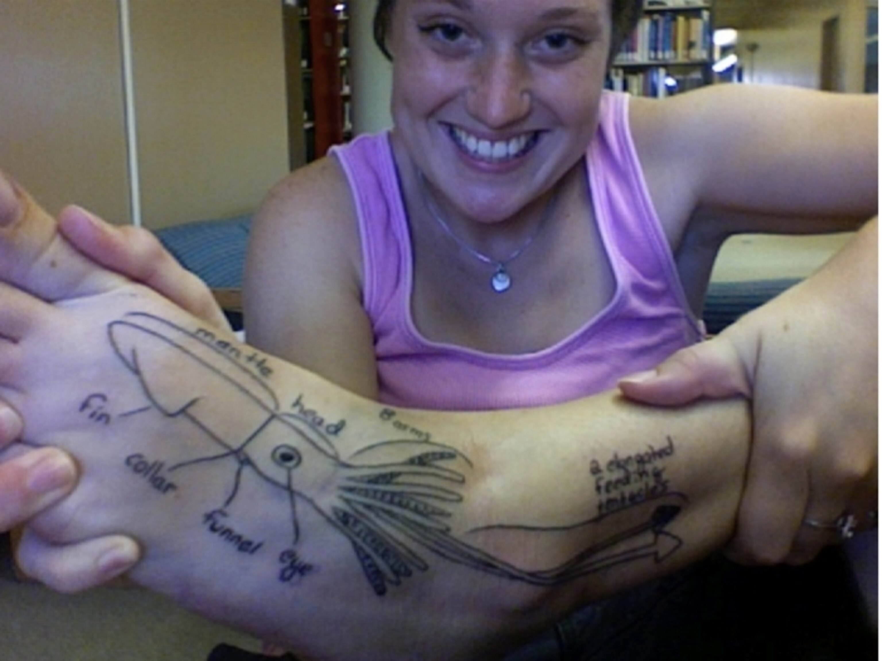 Rachel writes, “I recently got this tattoo as a graduation present to myself. I just graduated from Florida Tech with my BS in marine biology. I’ll be moving to New Zealand in July to study giant squid with my childhood hero, Dr. Steve O’Shea.”