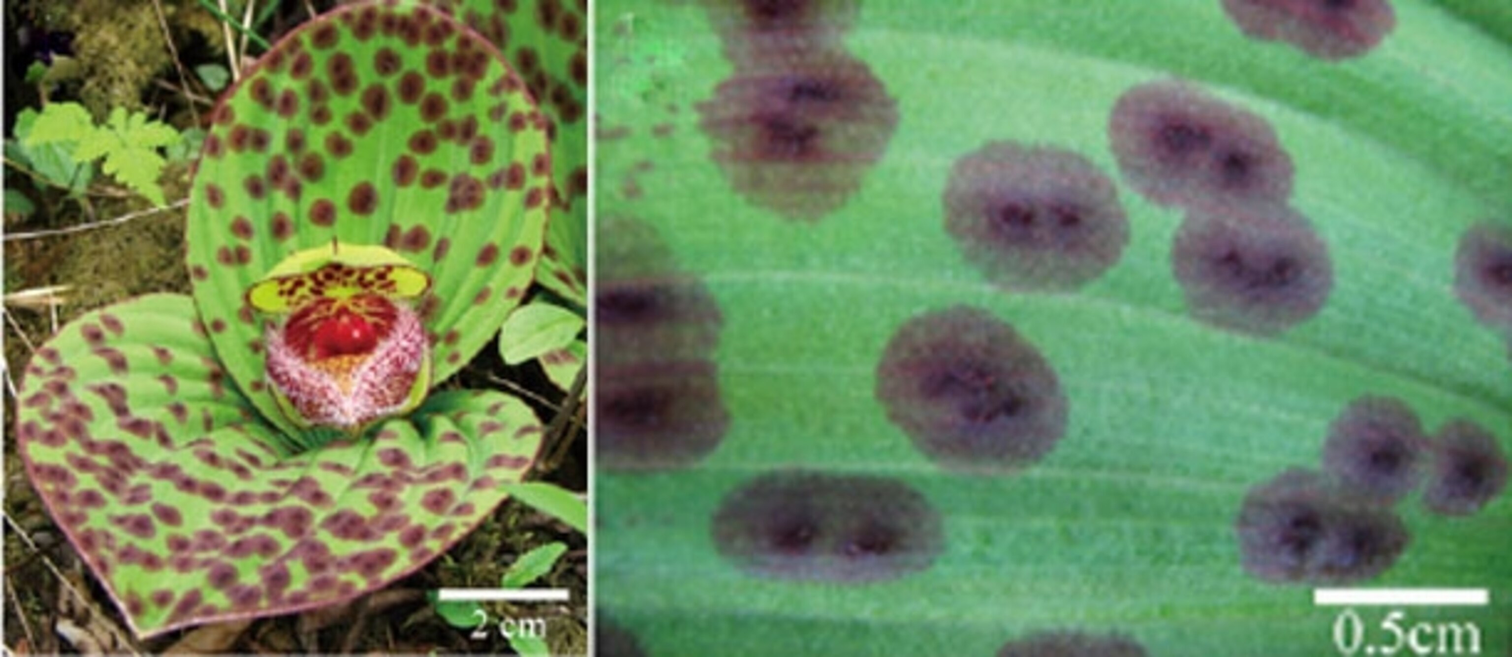 Reference: Ren, Li, Bernhardt & Wang. 2011. Flowers of Cypripedium fargesii (Orchidaceae) fool flat-footed flies (Platypezidae) by faking fungus-infected foliage. PNAS http://dx.doi.org/10.1073/pnas.1103384108