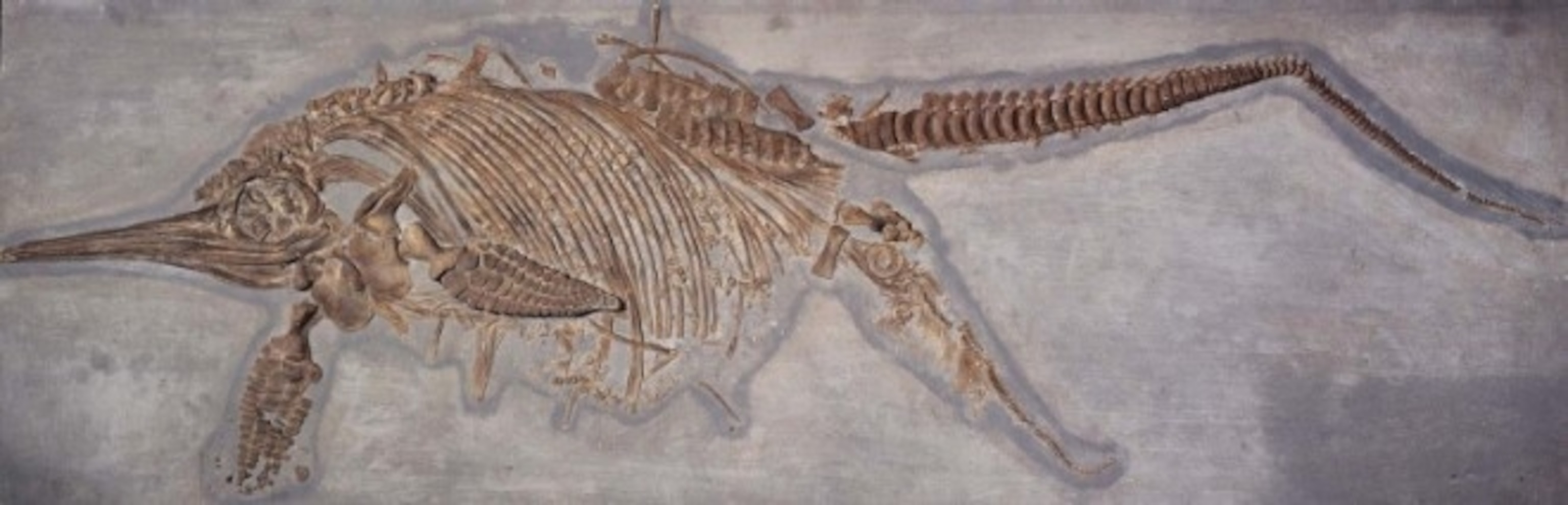 There was some initial uncertainty about this. What if the “embryos” were really the prey of the larger individuals? It’s a reasonable criticism, but the fact that the little ichthyosaurs were consistently the same species as the adults, lacked any evidence of having been fed upon, and were found too far back within the body cavity to have been contained in the stomach or intestines eventually ruled out the cannibal hypothesis. By the beginning of the 20th century, there could be little doubt that these shark-like marine reptiles were born into the sea. In some fossils the near-term fetus even protruded from the birth canal of its mother – a frozen moment sometimes taken as being the act of birth but that is more likely to be an effect of gases from decomposition pushing the embryo out after death. Many such specimens have been found. While embryos in other ichthyosaur taxa are relatively rare, there are hundreds of specimens of the genus Stenopterygius which contain embryos at varying stages of development.