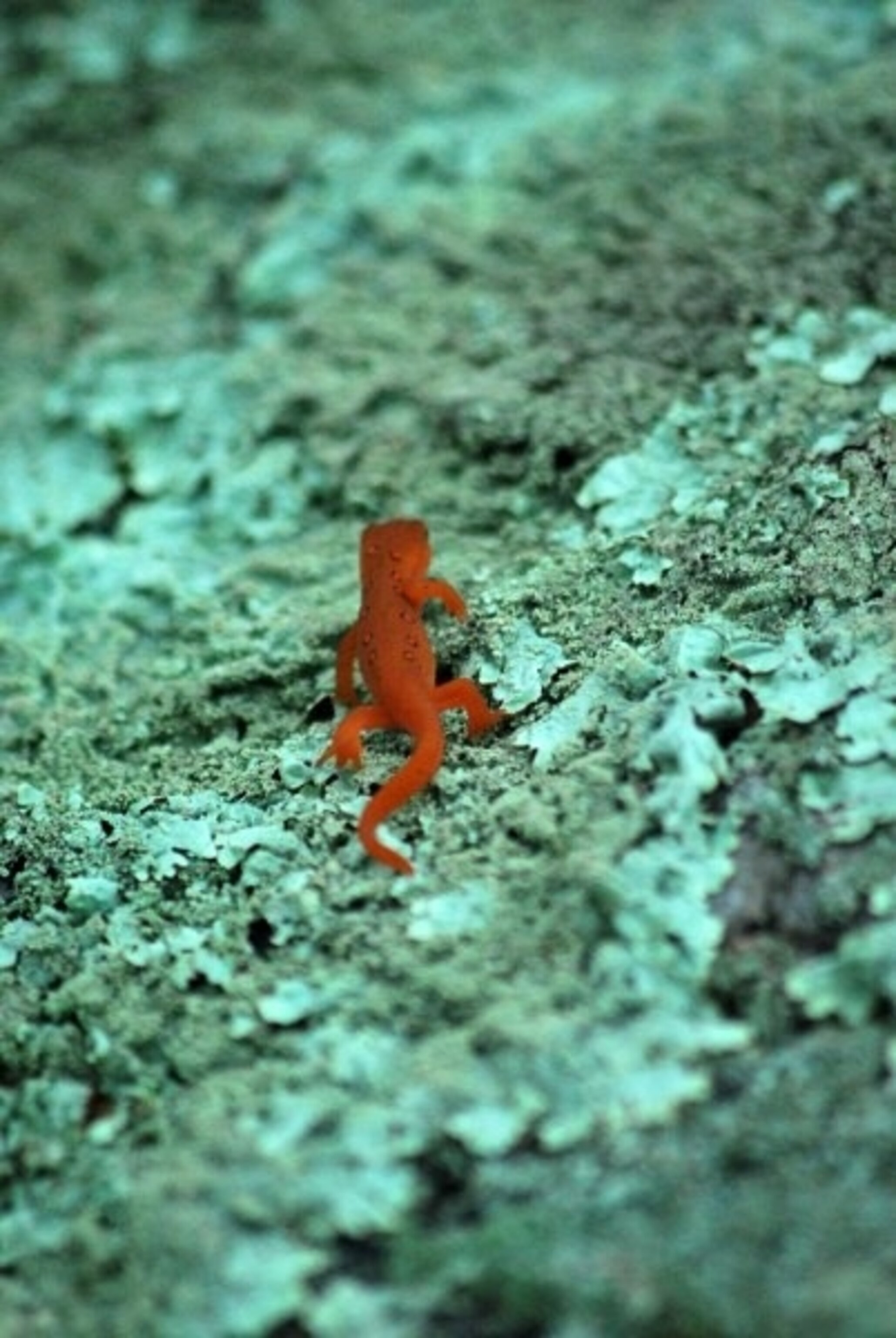 Image: A red eft, the juvenile stage of the red spotted newt (Notophthalmus viridescens), photographed on a hike near High Point, New Jersey in July of 2009.