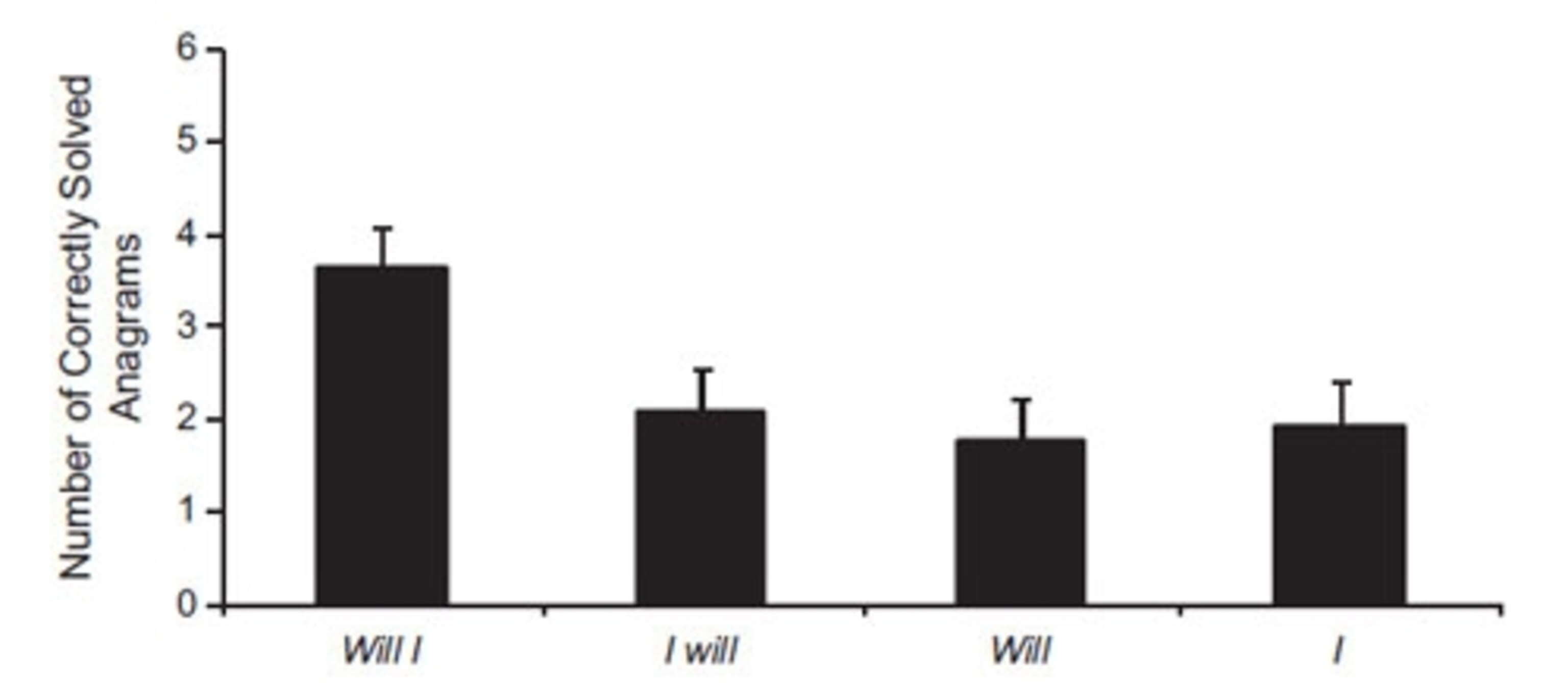 For his next experiment, Senay duplicated the same effect without any explicit instructions. Under the guise of a handwriting study, he asked 50 students to practice writing the words “I will”, “Will I”, “I”, or “Will”. After 20 repetitions, they were given some anagrams to do. The students who wrote “Will I” solved twice as many as those in the other groups. None of them guessed the true purpose of the experiment.