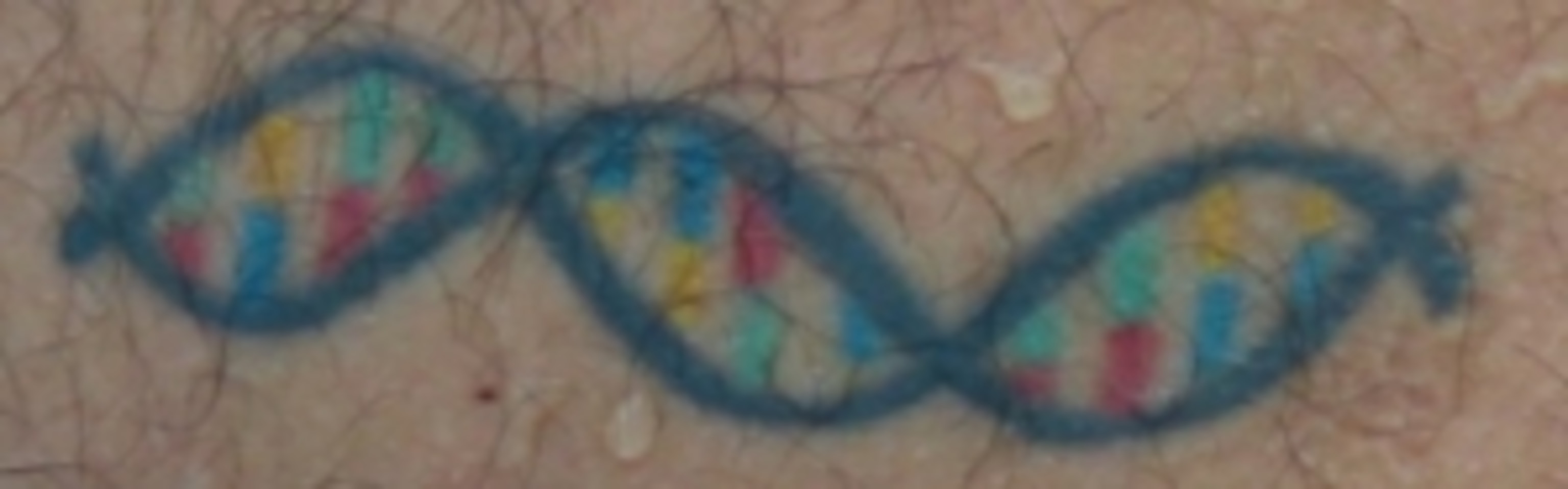 This is how the Emporium was born. Last summer I was at a pool party where a friend, Bob Datta, was bobbing around in the water with his kids. Datta is a post-doc at Columbia, where he studies genes in Drosophila flies. I noticed that Bob had a tattoo of DNA on his shoulder. At first I thought it was a generic snippet of the molecule, but then Bob told me that it actually represents, in the genetic code, his wife’s initials: EEE. Geek love in its noblest form.