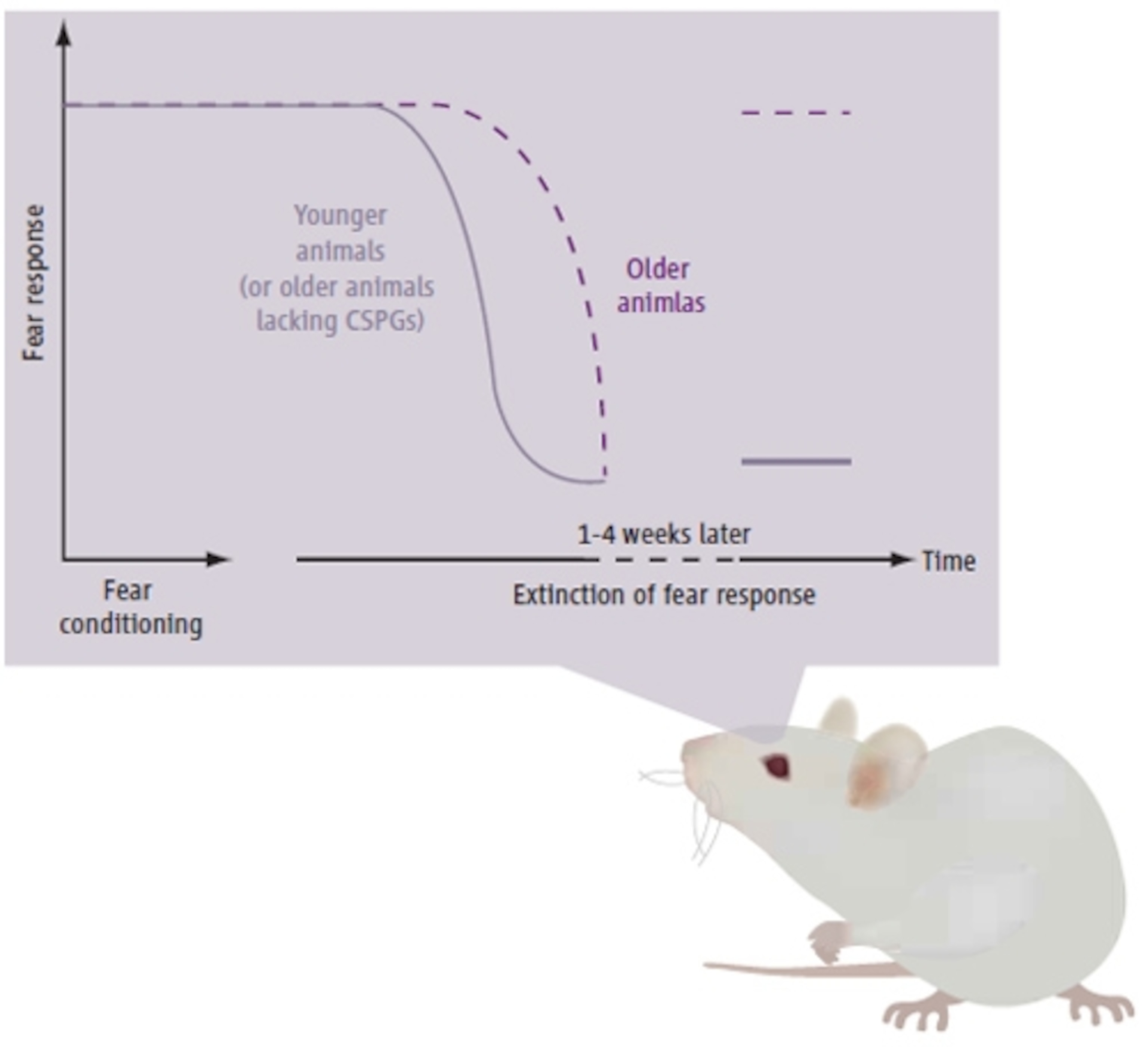 The nets start to form round about the time when rats reach adulthood and their fearful memories become harder to erase. As adults, rats can learn to be scared of an inoffensive sensation, like the sound of a buzzer, for the rest of their lives, if it’s paired with an unpleasant one, like an electric shock.