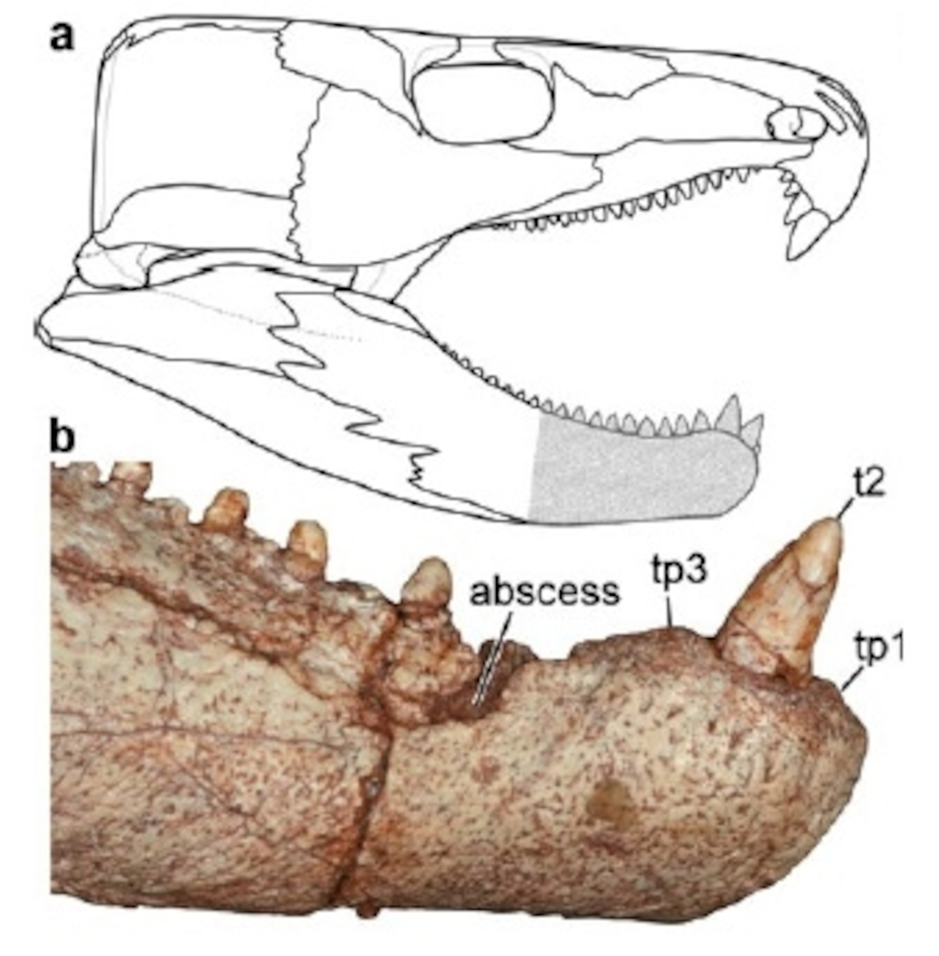 We will never know exactly what happened, but the scientists behind the new study were able to reconstruct the sequence of events. The unfortunate Labidosaurus had lost the two teeth at the front of the jaw first, and oral bacteria had become trapped inside the jaw when the damaged tooth roots were covered by bone. Things only got worse from there. The bacteria triggered a severe bone infection, leading to the loss of three teeth and irreversible damage in the inflamed, pus-oozing portion of the jaw. If this chronic infection did not contribute to the death of the Labidosaurus, it was still active when the animal died.
