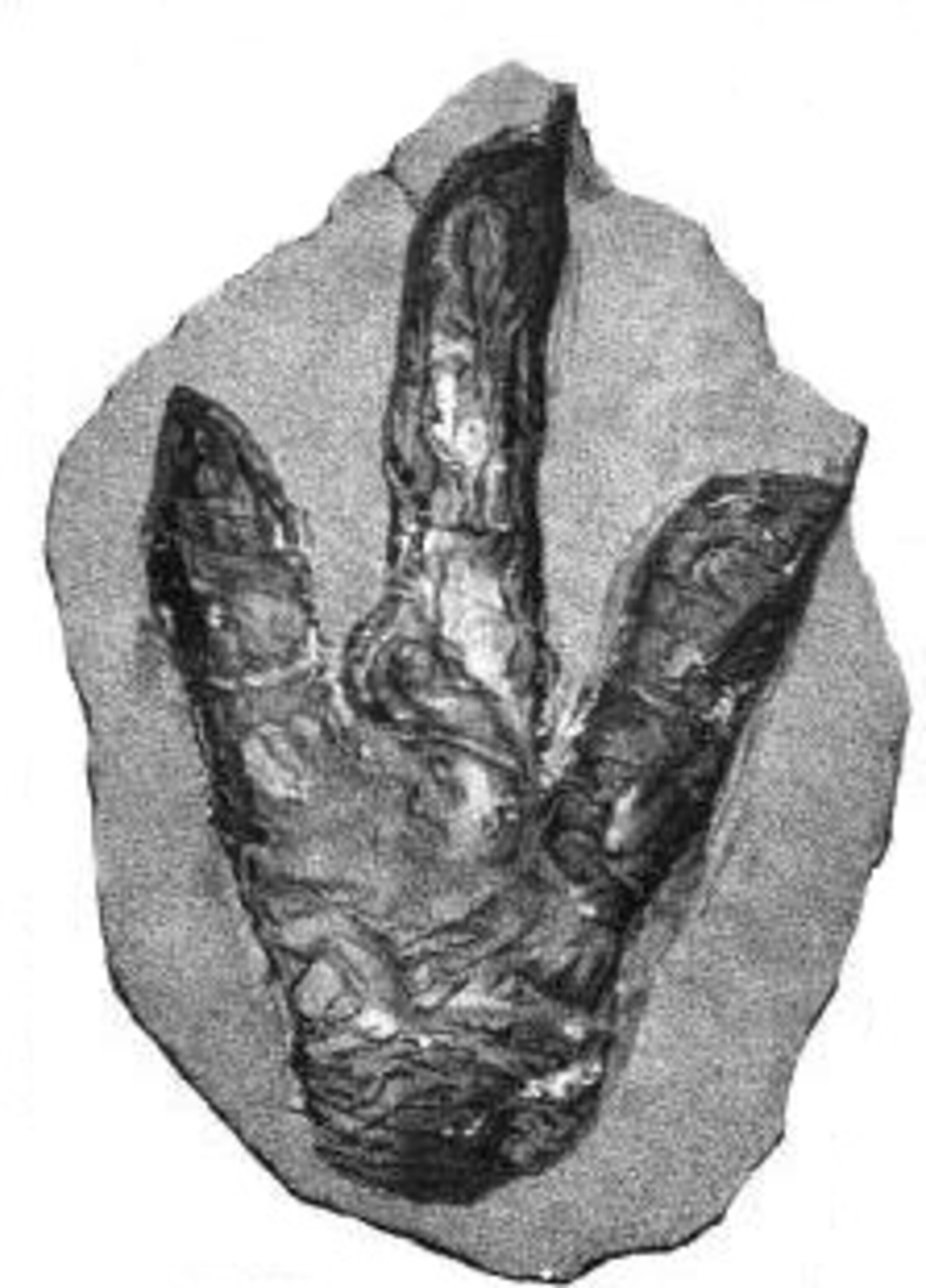 Top Image: The dinosaur track type Brontozoum giganteum, from Edward Hitchcock’s Ichnology of New England.