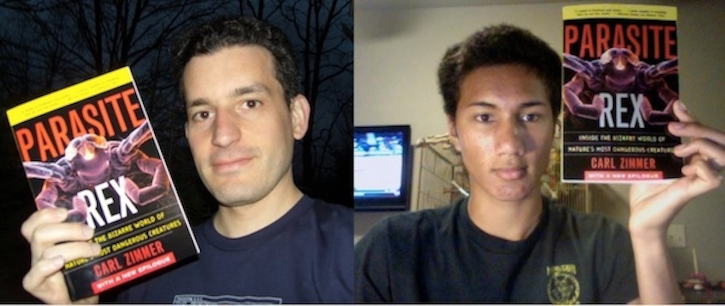 Steven Barritz (left) and Travis Bautista pose with their brand new copies of the revised edition of Parasite Rex with a new epilogue. I’ll be sending them an autographed book plate. If you’d like one, here are the steps: