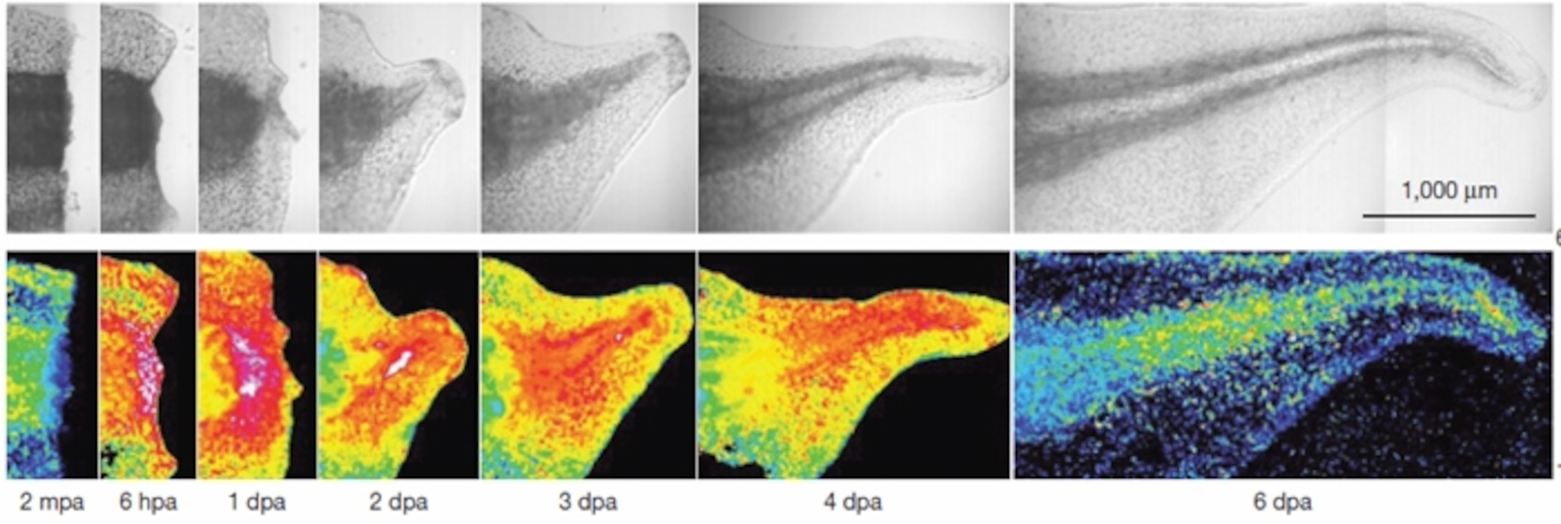 Reference: Love, Chen, Ishibashi, Kritsiligkou, Lea, Koh, Gallop, Dorey & Amaya. 2013. Amputation-induced reactive oxygen species are required for successful Xenopus tadpole tail regeneration. Nature Cell Biology http://dx.doi.org/10.1038/ncb2659