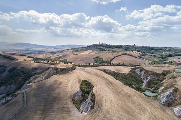 Parched fields stretch into the distance near Pienza, Tuscany, at the end of the long hot summer of 2017. This was Italy’s driest for sixty years with rainfall an alarming 80 percent below the historic average.