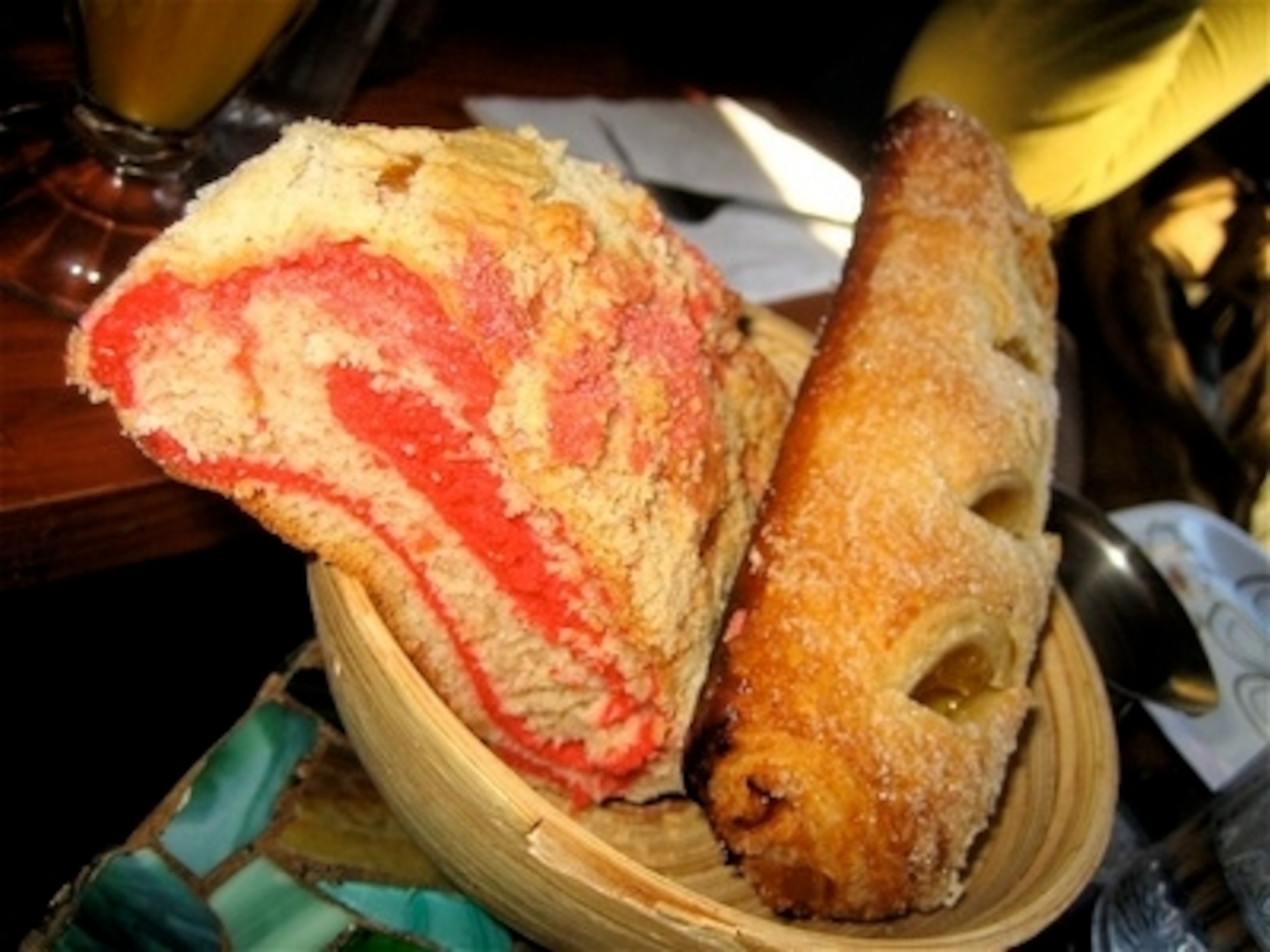 The $11.95 brunch includes hefty and somewhat spicy portions, unlimited tea or coffee, and colorful Mexican sweet bread. And as someone who doesn’t eat eggs, I was anxious after initially scanning the menu; all of the entrees were egg-centric. Not to worry, our gracious server suggested a trio of sides (chorizo hash, refried beans, and a chicken tamale adorned with guacamole) that filled me up and got me craving more – despite a stuffed stomach.