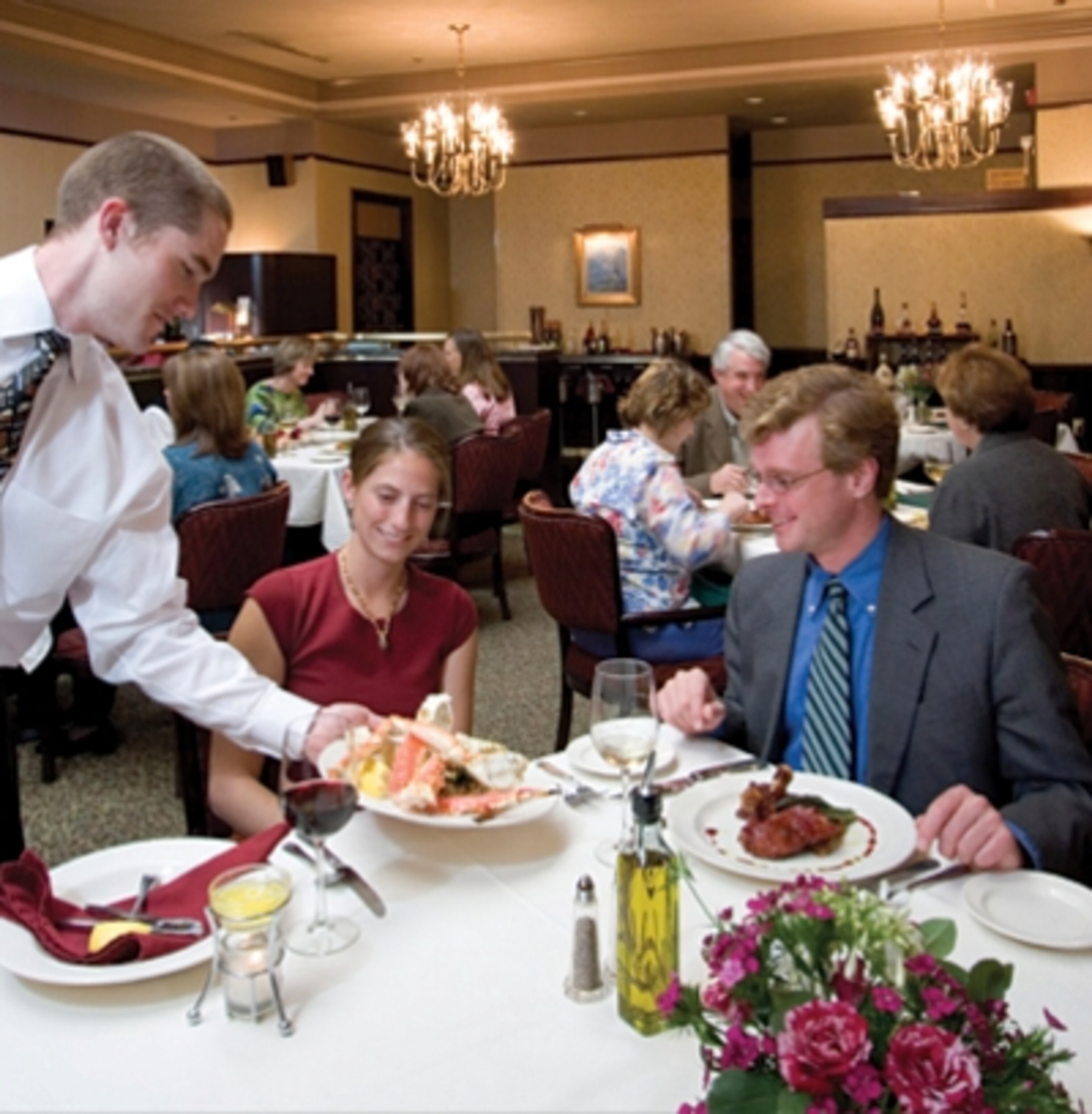 The Gold Room has a delicious menu with nightly specials and something for every taste. My favorites are the Parmesan halibut, the duck with marionberry sauce and the portabello. Of course, you can’t go wrong with a steak. So, for being the only choice it is a good choice.