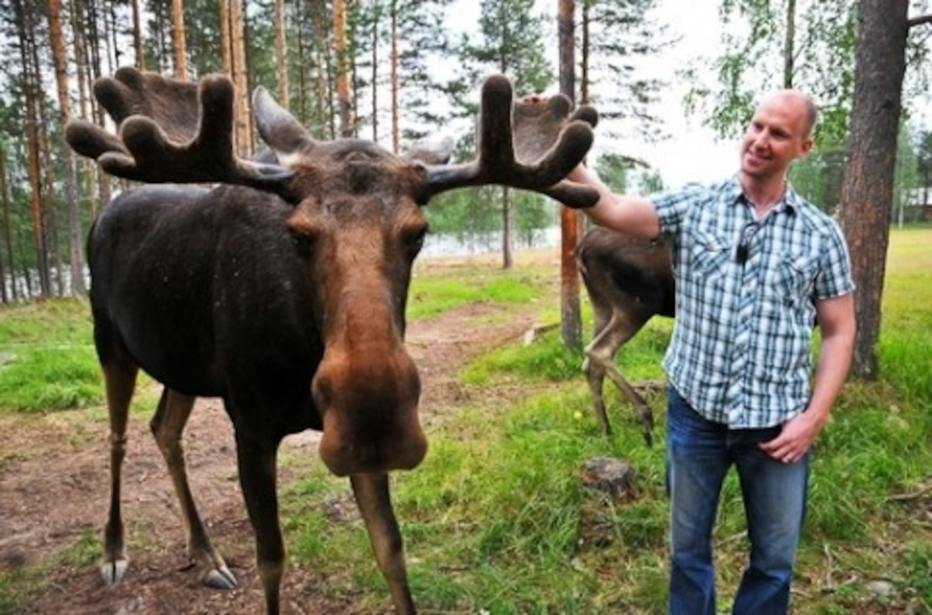 For hours, we’d tried fruitlessly to spot wild älg (moose in Swedish) as we drove along E10 en route to the Arctic Circle. Sightings are relatively rare, and around northern Sweden, wild moose are known to occasionally dart out into traffic, quite akin to deer freezing in car headlights in the U.S. Often when a moose is spotted, it’s too late for the driver. So when we saw a billboard pointing to the Arctic Moose Farm two kilometers north of Överkalix, we knew we found a safe way to catch a glimpse.