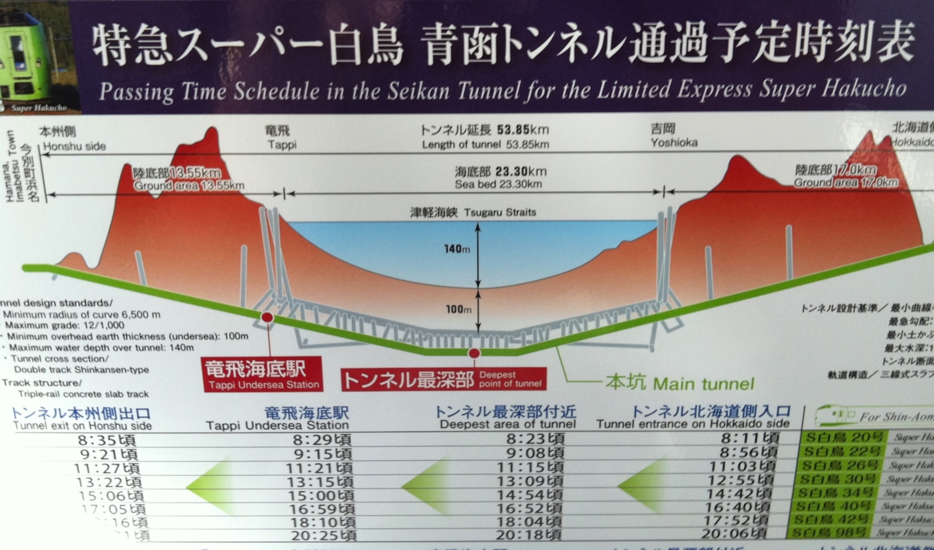 Japanese engineering continues to be the overachieving brainiac at the worldwide Science Fair. The Seikan Tunnel is the longest (and deepest) railway tunnel in the world—33.46 miles long—and I was riding through it.