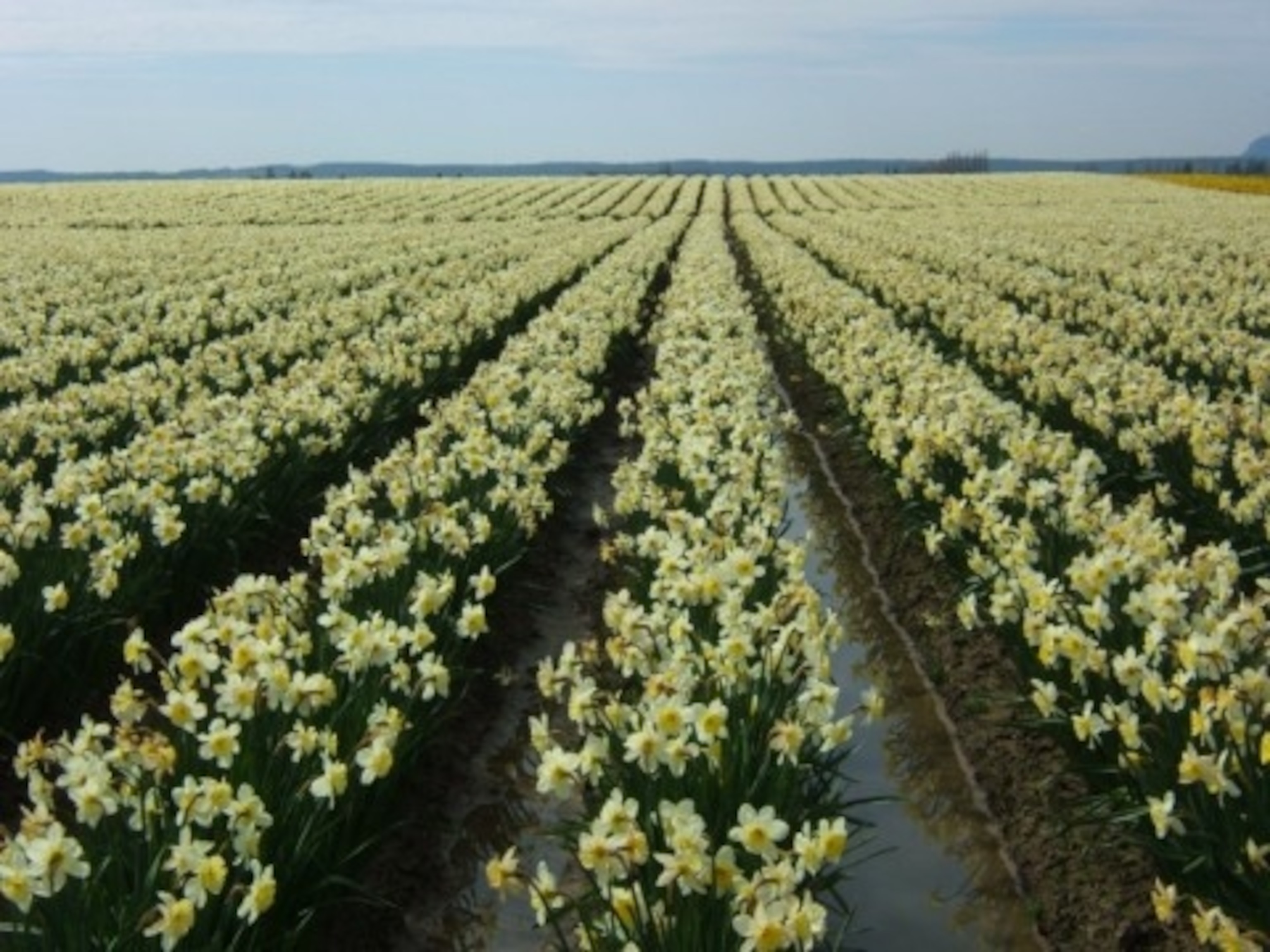 From Edison we headed back south to La Conner, Washington, to check out the 25th annual Skagit Valley Tulip Festival. The festival technically takes place during the month of April, but due to an unusually cold spring, only the daffodil fields were in bloom mid-month. By now, some of the tulip fields are finally showing full color (click here for a great guide to the fields in bloom), but the cold weather is like keeping the tulips in a fridge, so I suspect there’s still time to see the colorful fields. My mom and I took pictures in the Roozengaarde fields (complete with windmill, you almost feel like you’re in Holland), but soon realized that all the tourists who weren’t in Seattle were there, so we continued along our journey.