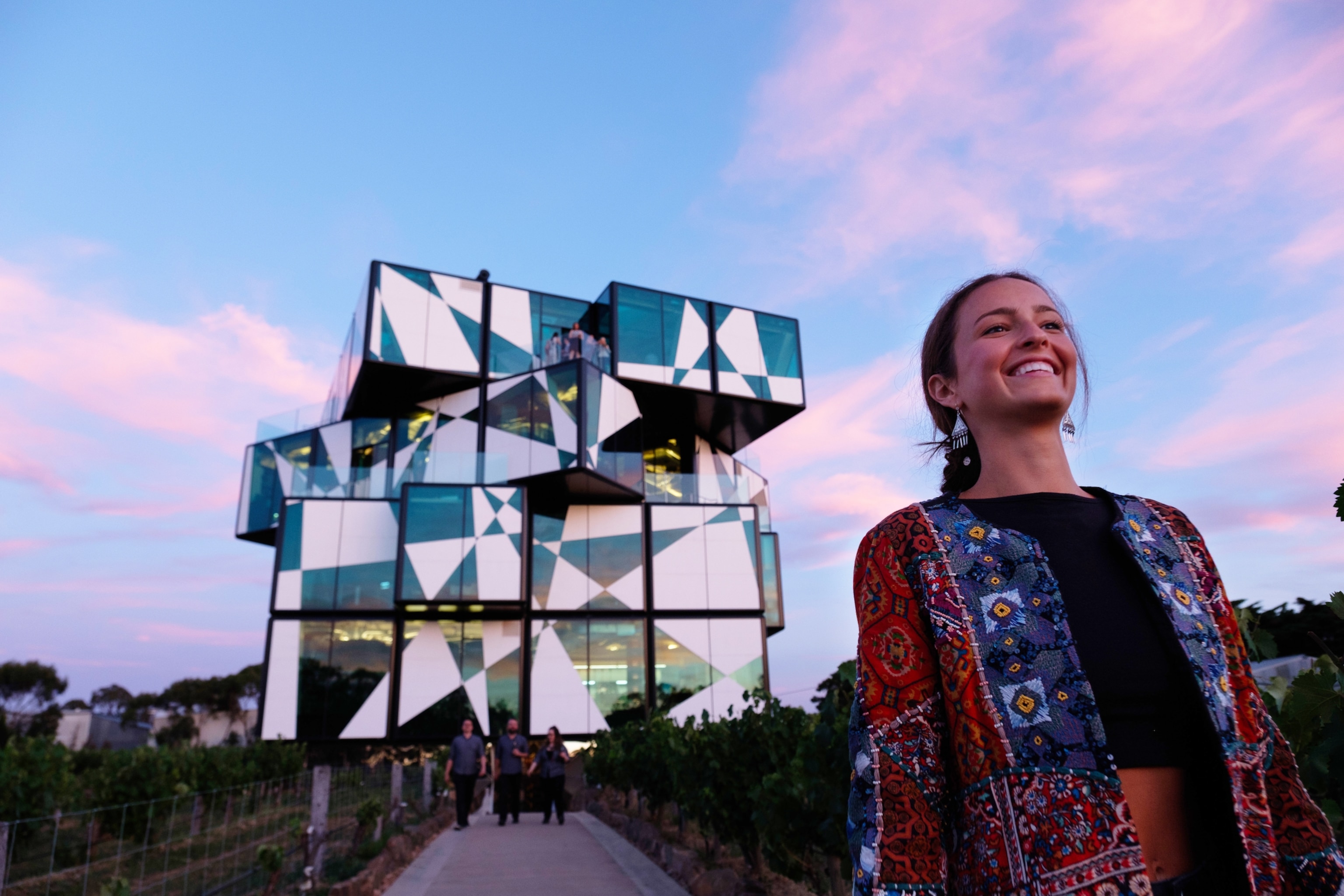 Heading down into the Fleurieu Peninsula, less than an hour’s drive from Adelaide, Dan soon found himself in the lovely McLaren Vale, one of the country’s top wine regions. McLaren Vale surrounded by rolling hills on one side and beautiful beaches on the other, includes a number of unique vineyards such as D’Arenberg. The vineyard had just opened its new cellar door, known as “The Cube”, which looks something like a giant glass Rubik’s cube. The vineyard, a fourth-generation family operation, dates back to 1912. The Cube and its fevered contemporary art are the product of a dream by its chief winemaker, Chester Osborn. Inside, guests will experience an inhalation room, a virtual fermenter, and an “alternate realities museum.” “You could tell right away that this is going to be the centerpiece of this whole wine region,” Dan predicted. D’Arenberg features 60 wines and an award-winning restaurant in an enclosed verandah that provides magnificent views of the valley and vineyards.