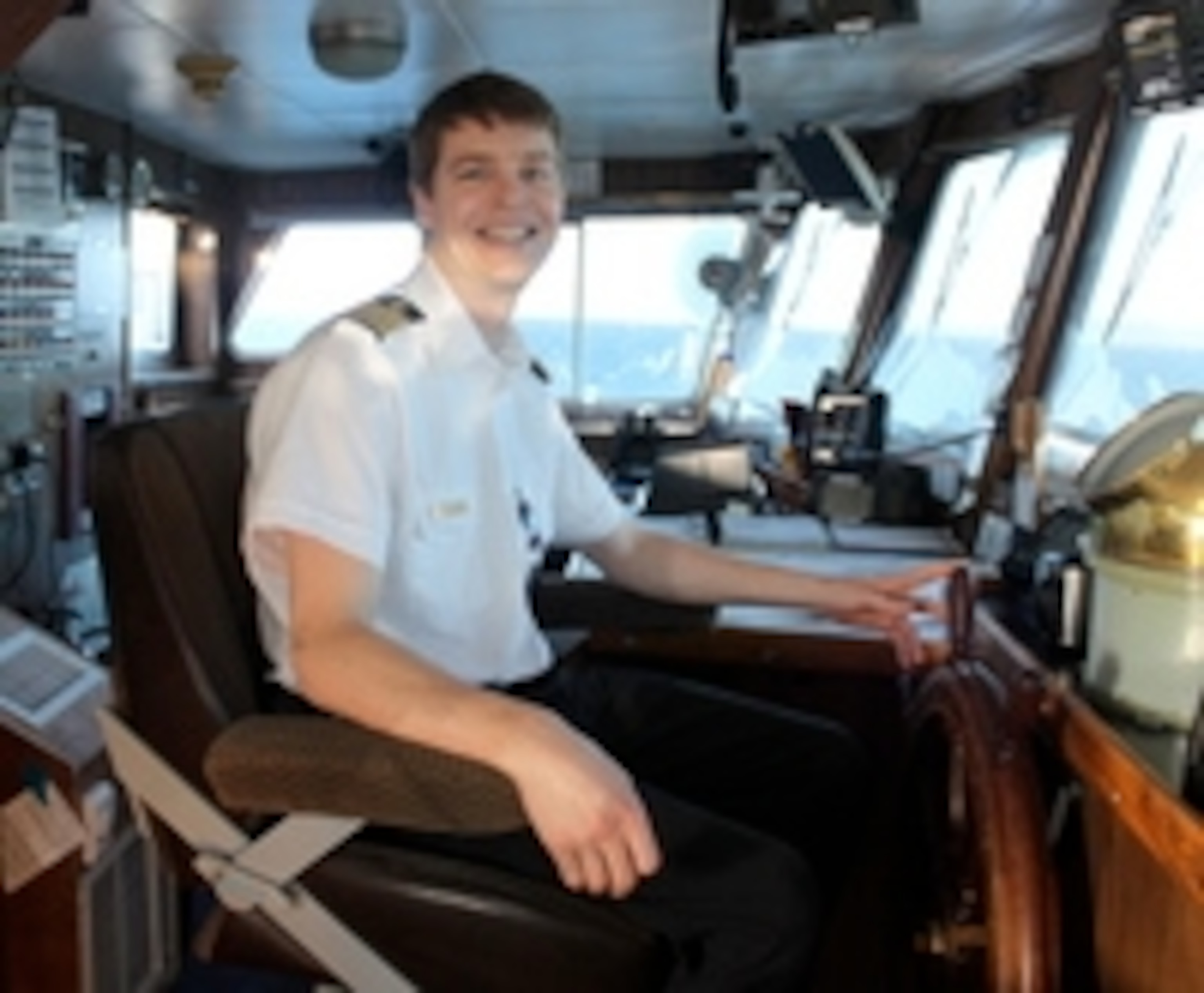 On a sunny afternoon out at sea, I got to spend an afternoon up on the bridge with the Captain. He was relaxed and convivial and was happy to show me around his workplace with all of its tools, charts, and monitors. We were so far out to sea that he even felt safe enough to let me take the wheel for about three seconds.