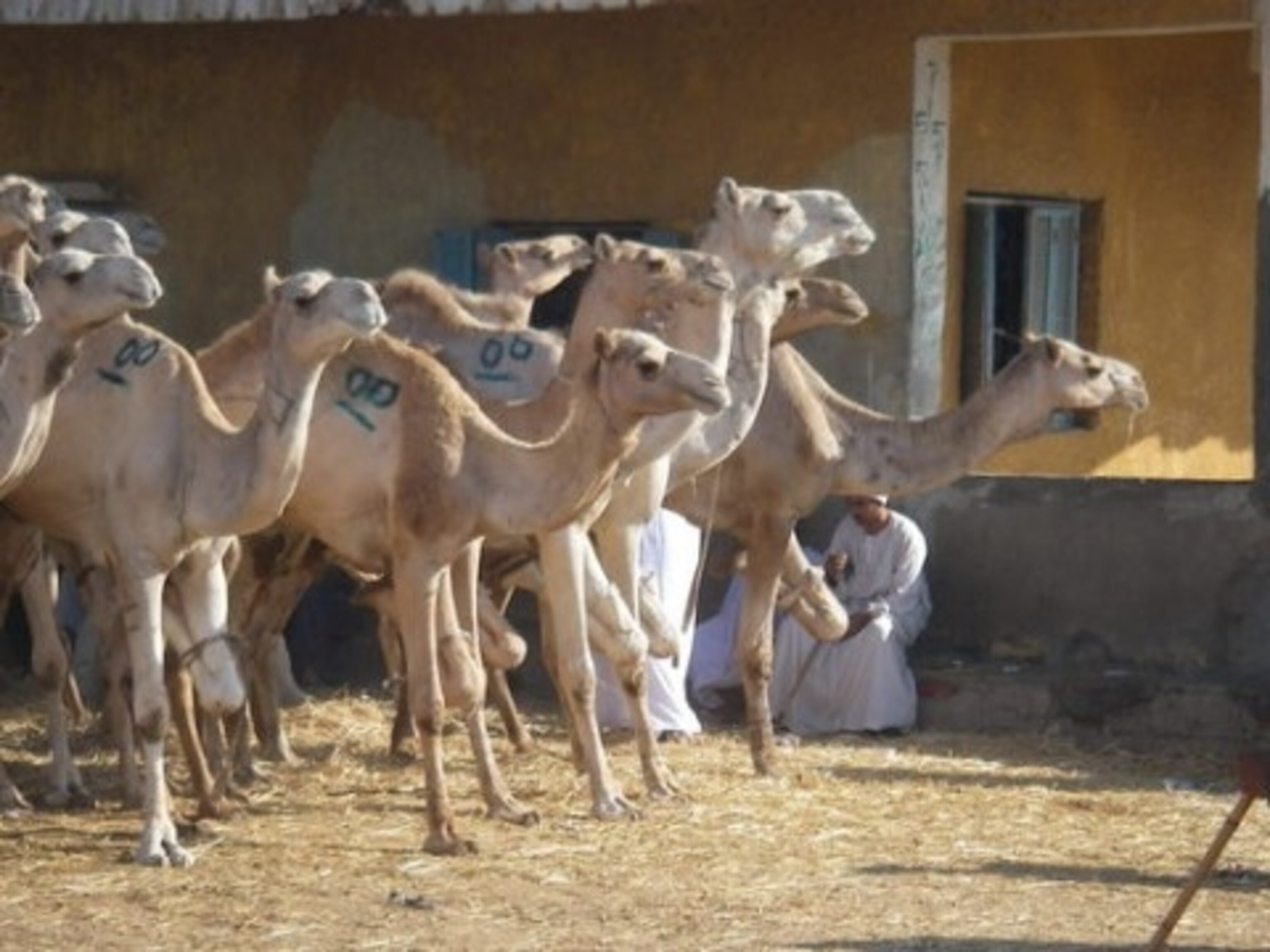 Hundreds upon hundreds of camels line a dirt path, waiting to be sold. Each has one of its front legs tied up to prevent it from running, and the resulting visual spectacle of scores of hobbling camels is hard to believe.