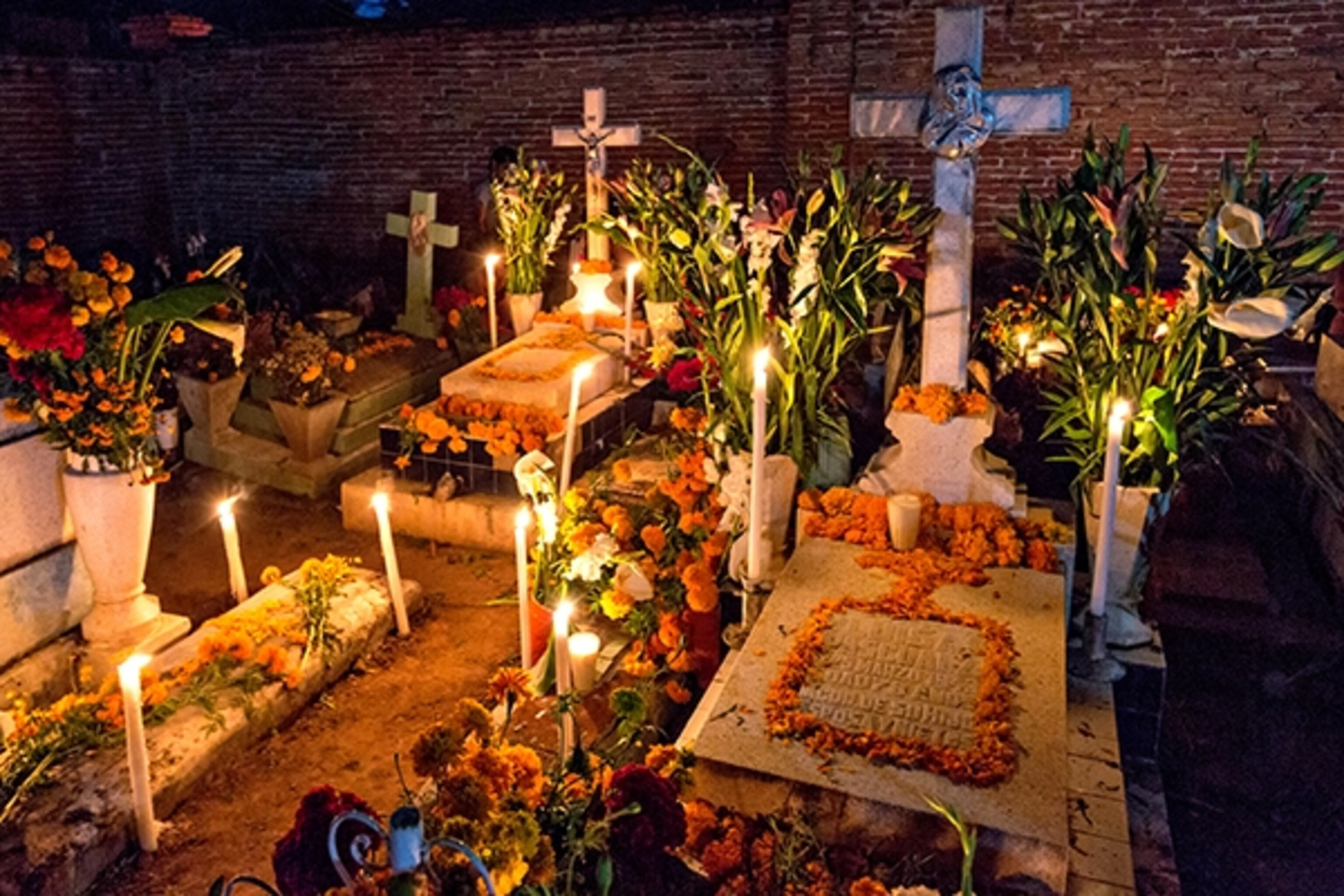 Crowded around an ancient, crumbling chapel, the rickety headstones in this old graveyard outside of Oaxaca can be difficult to walk between—especially during Day of the Dead celebrations. Revelers begin with a vigil the night of October 31, when the departed are feted with altars, candles, and marigold petals. Six blocks away, a carnival-like atmosphere pervades the Panteon Nuevo, or new cemetery, with picnicking families, strolling musicians, and vendors selling pan de muerto (bread of the dead) from tents.