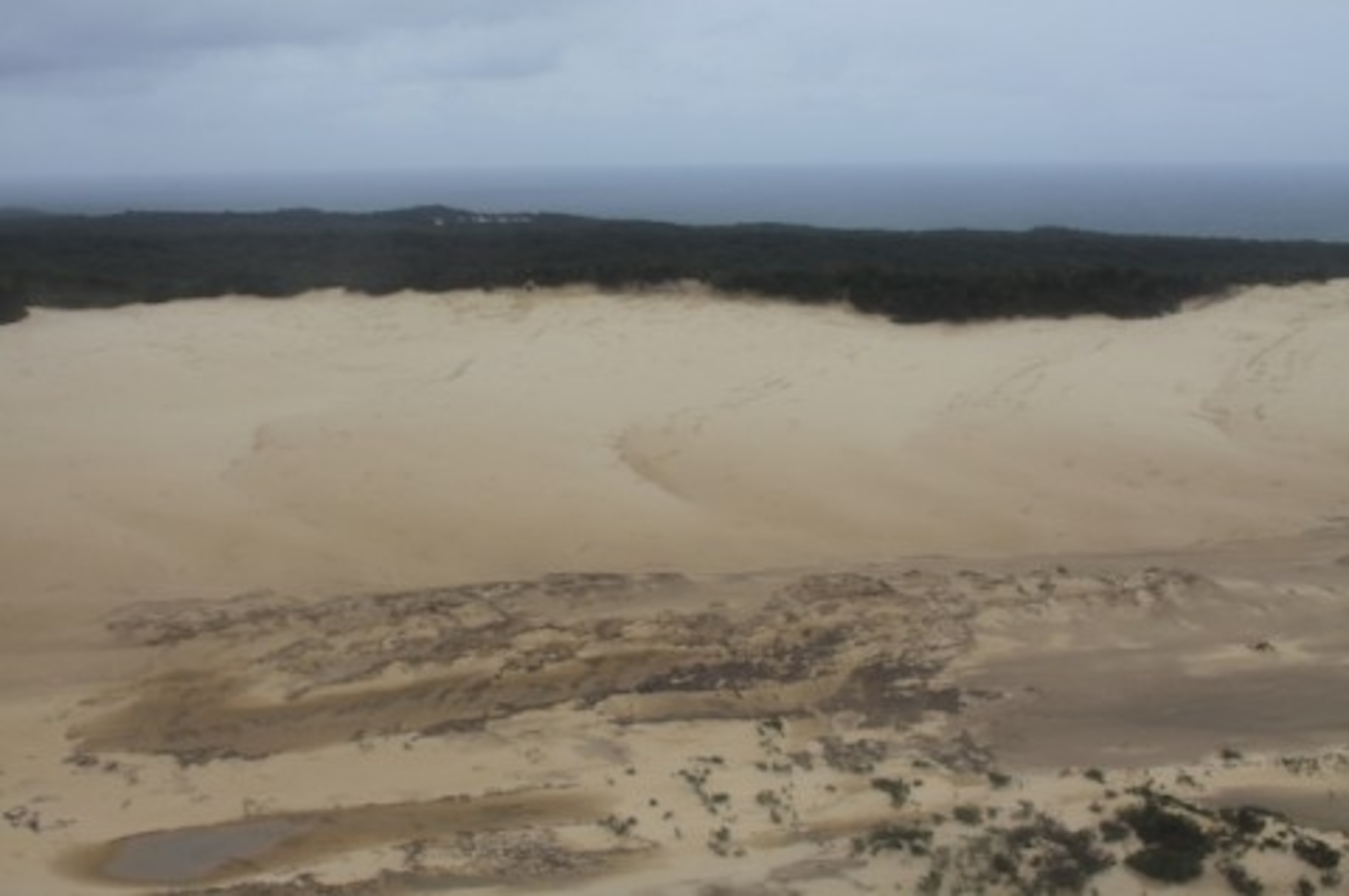 We flew low–sometimes only just right above the trees it seemed–and the perspective was marvelous. I could see the true length of the island–the 123 kilometres of sand bar that stretched all the way to the horizon. The rain forest was thick, green, lush, dense and round–it felt like I was flying over the canopy of the Amazon. I saw the crystal clear freshwater lakes that dot the island’s interior and the Sahara-like “sand blows” that form when wind pushes the beach inland.