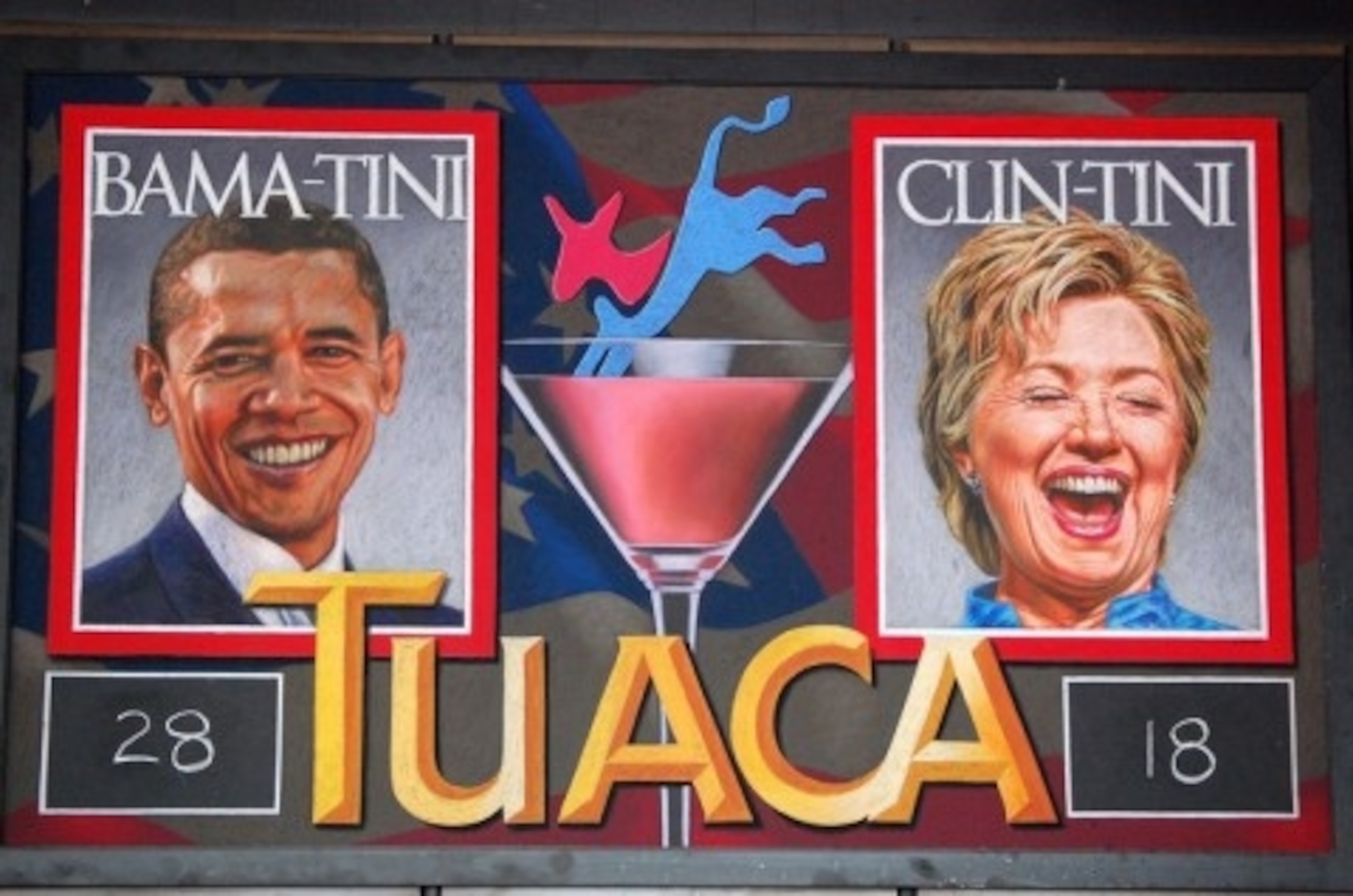 But if you stop by the lounge this week, stay away from their classic varieties, step up to the 1909 Brunswick bar to order a “Bama-tini” or “Clin-tini,” and watch as Tini Bigs’s Democratic cocktail caucus takes place right in the lounge. Both drinks are made from the exact same ingredients, and for every drink ordered, the tally will go up on the board (pictured, above).
