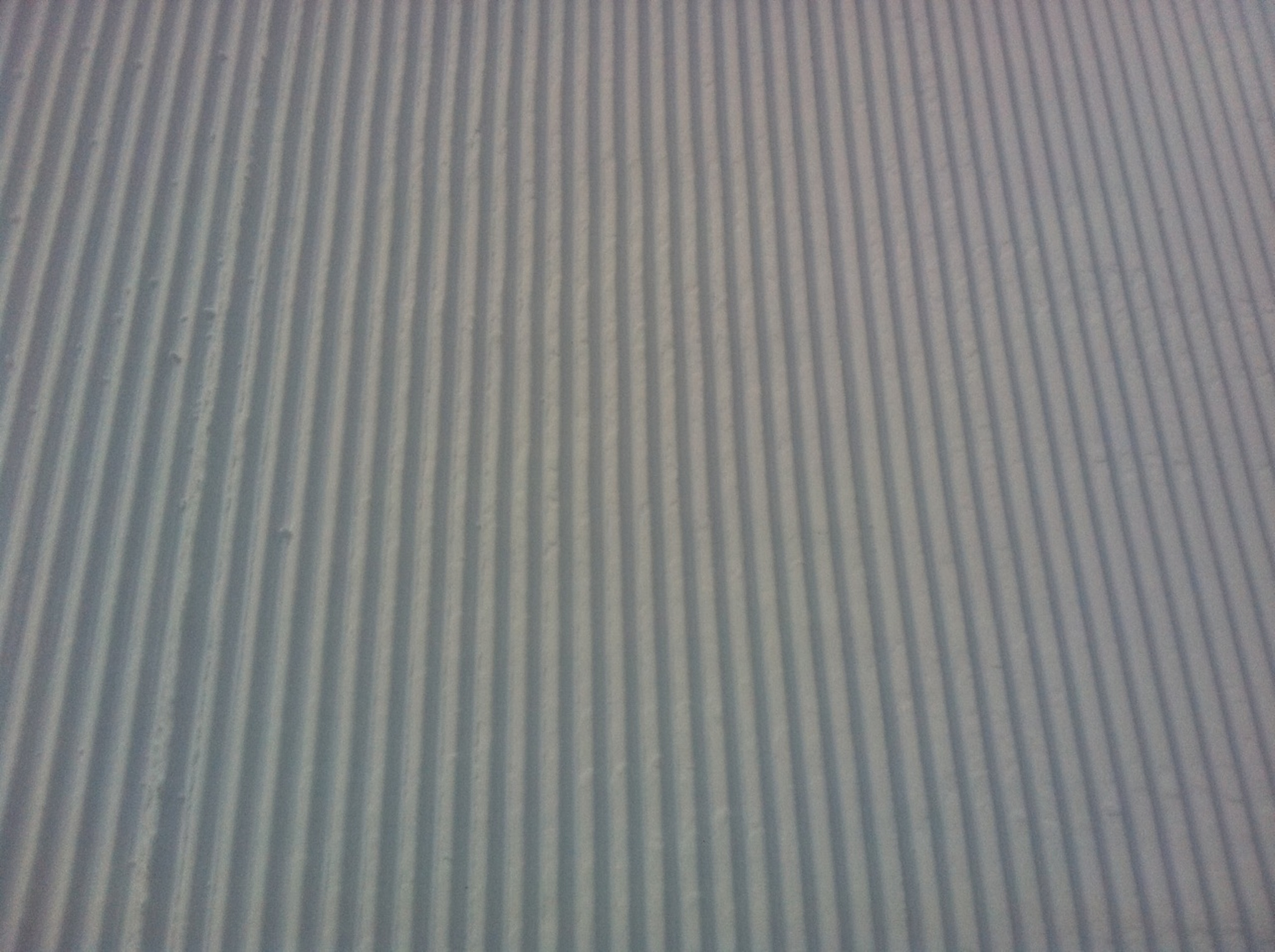 The lined furrows are called “corduroy” because the groomed snow looks just like the fabric of the same name. A good groomer turns a messy, heavily skied slope into a smooth and even ski surface.