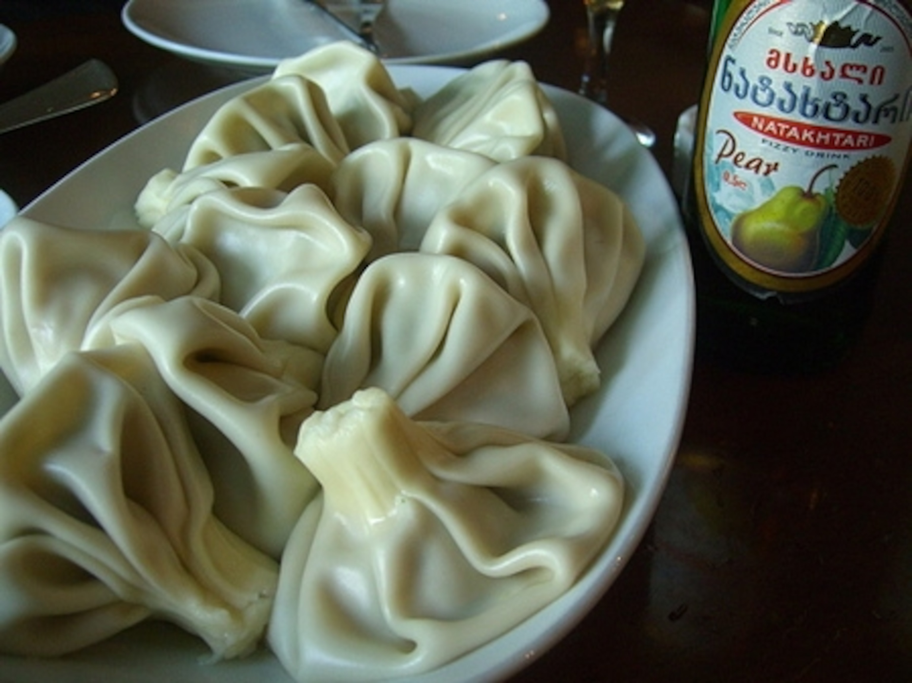 “Our Georgian friend taught us how to eat them properly on that first encounter: hold it by the knob so that the meat is below your hand, sprinkle it with black pepper, create a little tear and suck the broth out so that it doesn’t spill all over your hand, then dive in to eat the rest. Don’t eat the dough knob–it will fill you up, and the knobs are counted at the end of the meal to figure out how many you ate.”
