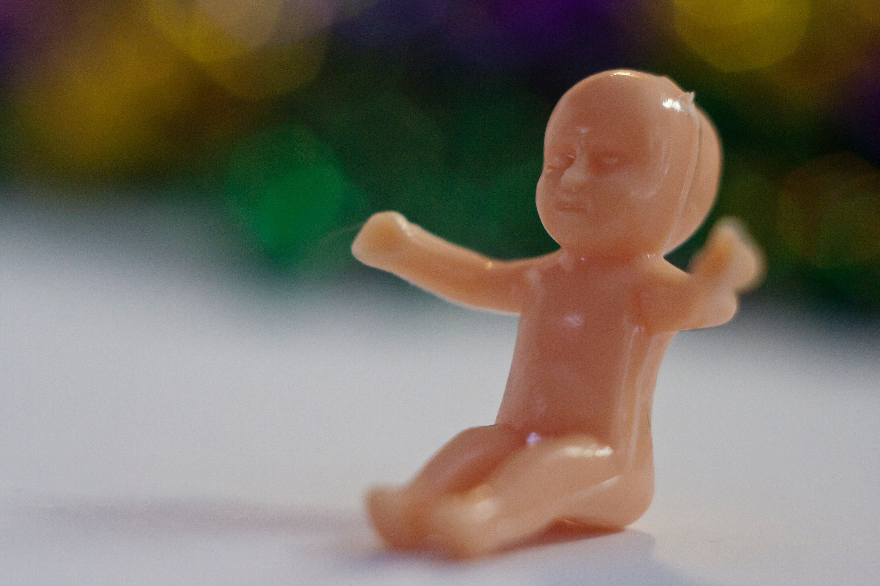 King cakes are a Mardi Gras tradition. This braided, bread-like cake is topped with tri-color sugar in the Mardi Gras colors — purple, green and gold. King cakes are only enjoyed during Carnival season, which starts on January 6, King’s Day — named for the day the Magi visited Jesus — and ends the day before the Lenten season begins. A plastic king-cake baby, symbolizing the infant Jesus, is hidden in the cake. The person who gets the piece of cake with the baby traditionally has to buy the next king cake. So, if you’re cheap, avoid the baby and, most importantly, don’t swallow him.