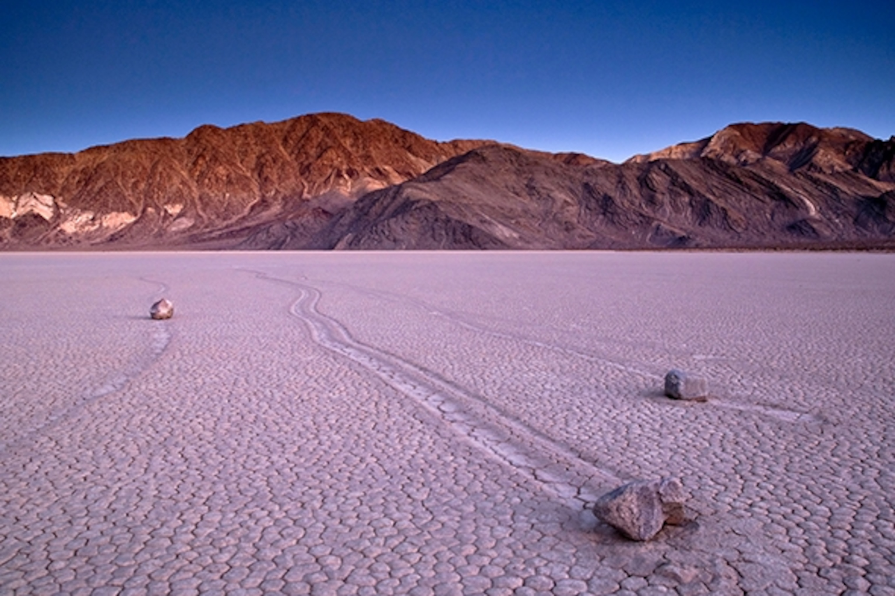 The “races” seem to take place overnight; no one has actually witnessed the rocks’ movement. The long-standing theoretical explanation: Rain causes the playa surface to become slick, and strong winds blow and push the rocks across its surface. One problem with that theory is the fact that the rocks sometimes seem to move in concert with one another, but other times split up and go their own way. No one really knows for sure how they move.