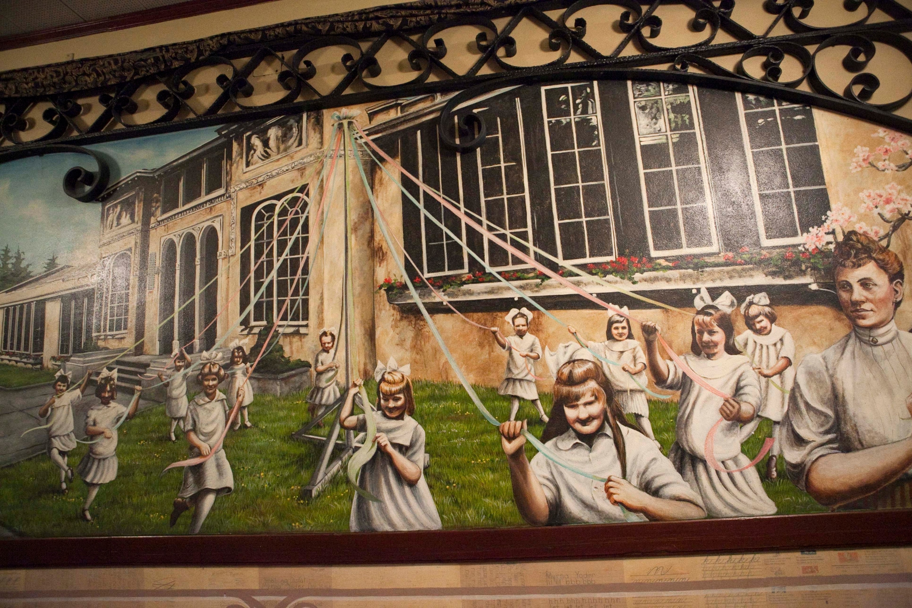 My “hotel” room wasn’t numbered; it was simply called Mrs. Drew’s Room. The lighting was so dim I had to put on my headlamp to get things organized. That’s when I saw the cats painted on my wall, dancing around, along with lyrics to the nursery rhyme, “Three Little Kittens (Wearing Mittens).”